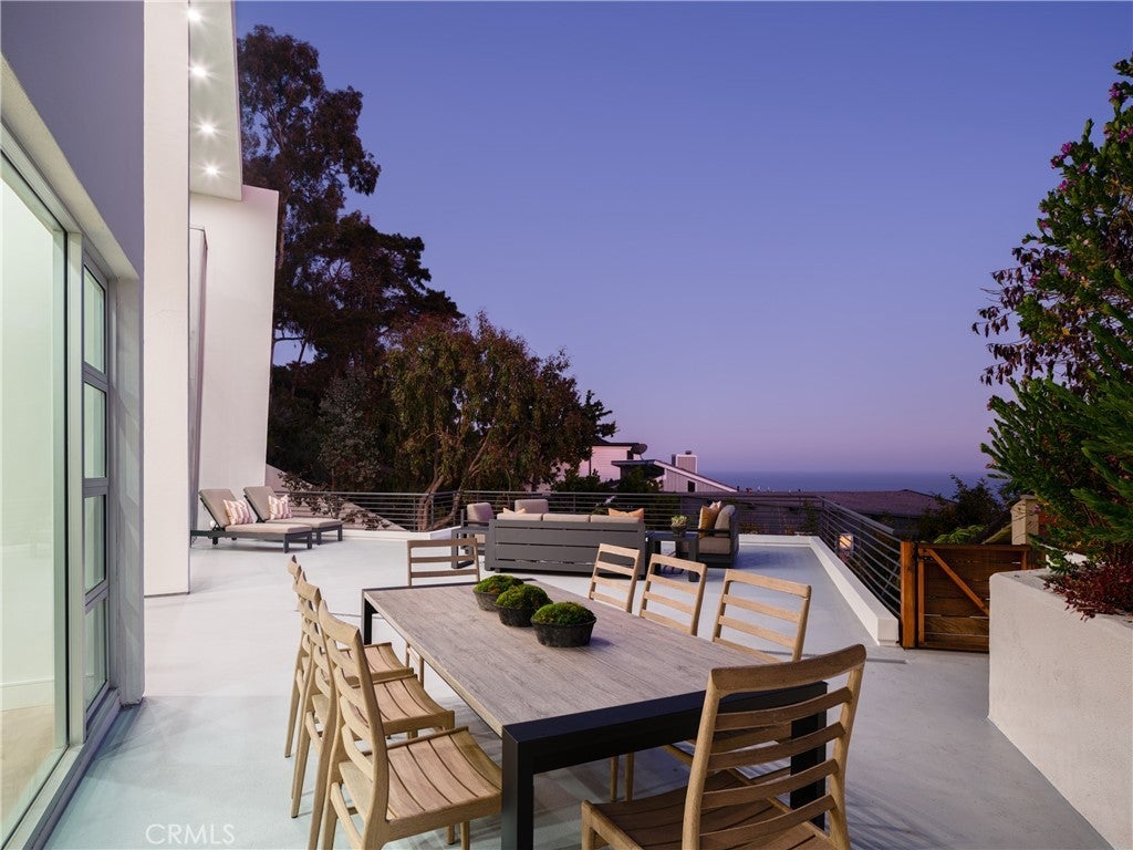 Located in the beloved upper Victoria Beach neighborhood, this private estate boasts striking modern architectural design and quality finishes. Expansive windows and soaring ceilings flood the home with natural light, framing stunning ocean views from the living room, kitchen, and spacious front deck. The main bedroom suite also offers breathtaking city light, hillside and ocean views for as far as the eye can see. The kitchen is equipped with Wolf and Sub-Zero appliances and features waterfall edge, twin center islands. This home provides multiple indoor and outdoor sitting and dining areas, perfect for entertaining or enjoying the serene and private surroundings. Additional amenities include a bonus room with a private entrance off the first floor, a two-car garage, and an oversized driveway with extra parking. Located close to the five star Montage Resort and Spa and award-winning restaurants, this estate is just moments from famous art galleries, over one hundred local restaurants, live entertainment, and endless outdoor activities....This is the perfect place to call home while being surrounded by everything that makes Laguna Beach a world-class destination.