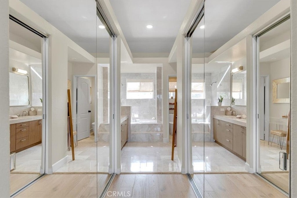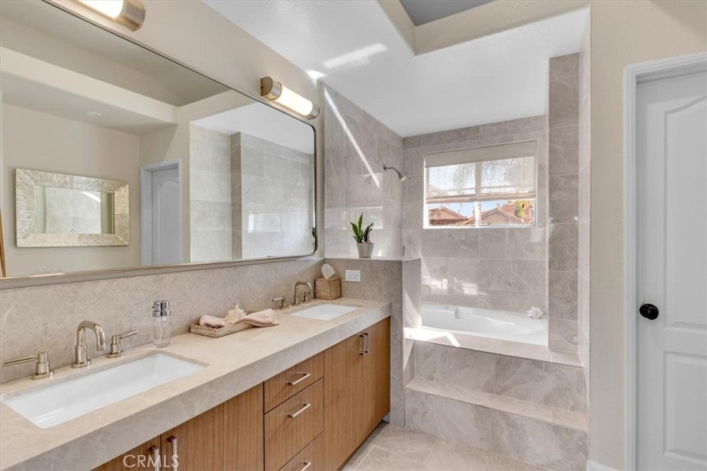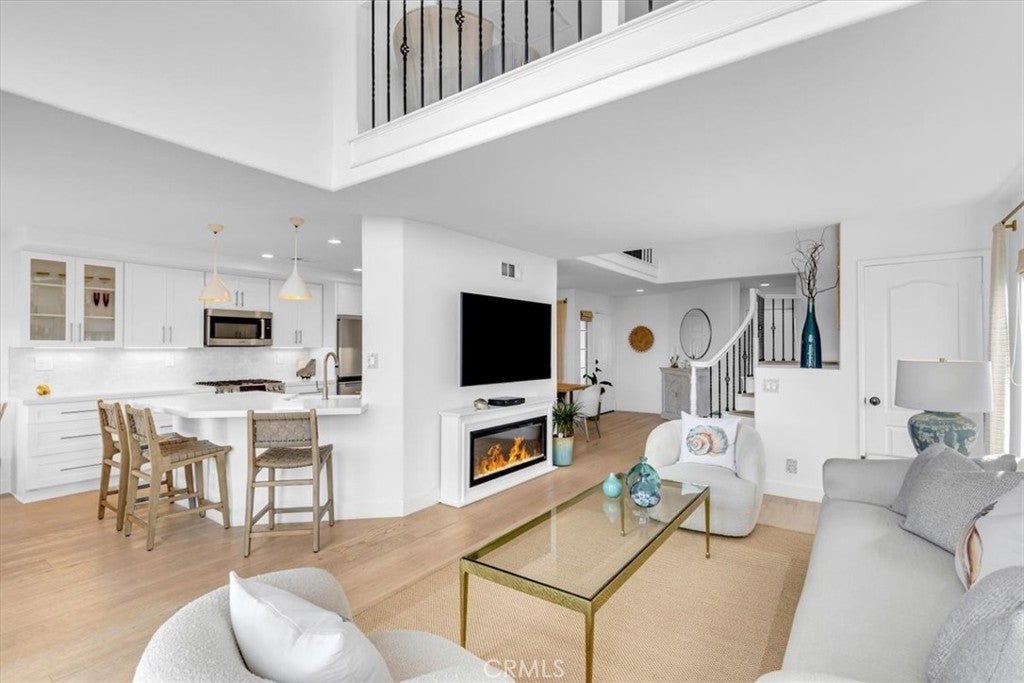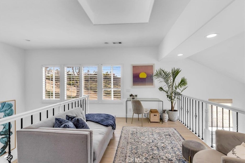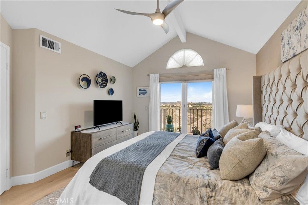 Phenomenal panoramic views welcome you to this refined two bedroom, two and one-half bath home, thoughtfully remodeled with high-end finishes throughout. Elegant engineered flooring flows through the living spaces, complementing a designer kitchen appointed with crisp quartz countertops and updated cabinetry. The bathrooms feature marble counters and elevated fixtures that create a spa-like experience. Set on an impressive wrap-around lot, the exterior offers exceptional space for entertaining, unwinding in the private spa, or simply enjoying the phenomenal panoramic views. With scenic hiking trails located nearby, the home provides a perfect blend of luxury living and Southern California outdoor lifestyle.