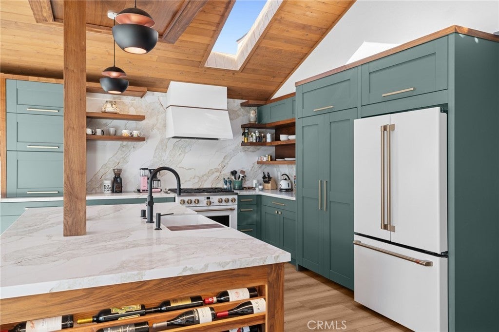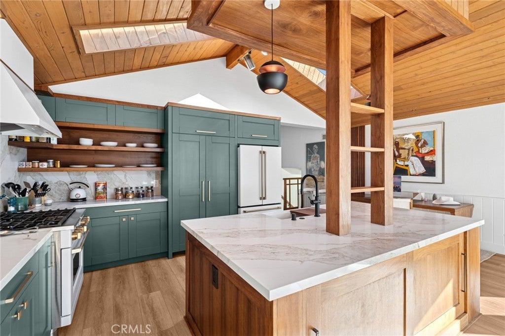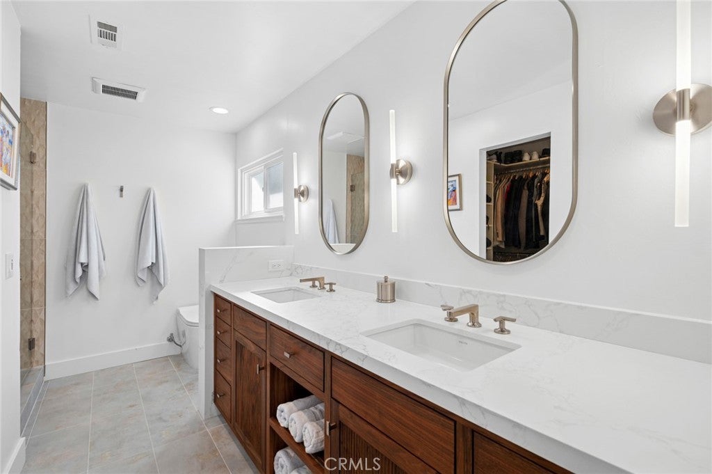 Enjoy coastal living in this pristine Dana Point residence, ideally located near the beach with ocean views from the upstairs front bedrooms. The home welcomes you with an open, spacious main living area that flows seamlessly into a designer-renovated kitchen, filled with natural light and overlooking the expansive backyard. The kitchen features a large island with ample storage, a commercial 6-burner gas range with convection oven, touchless faucet, and a charming bay window. This versatile floor plan offers 5 bedrooms, including a downstairs family room with a separate bedroom and bath perfect for guests, multigenerational living, or an office suite. Upstairs are four additional generously sized bedrooms and fully upgraded bathrooms. The primary suite includes a Trex balcony overlooking the backyard and a spa-inspired bathroom with a walk-in shower, wood-slat accent wall, and built-in closet system. The two front bedrooms each have access to an outdoor deck with beautiful distant ocean views. The private backyard is thoughtfully tiered, providing multiple spaces to relax and entertain, including a covered patio. Additional features include a three-car attached garage, air conditioning, skylights, and smart toilets in both upstairs bathrooms. Ideally positioned near Dana Point Harbor, beaches, dining, shopping, trails, resorts, and local schools, this beautifully upgraded home is a rare opportunity to own in one of Dana Point’s most desirable coastal communities.