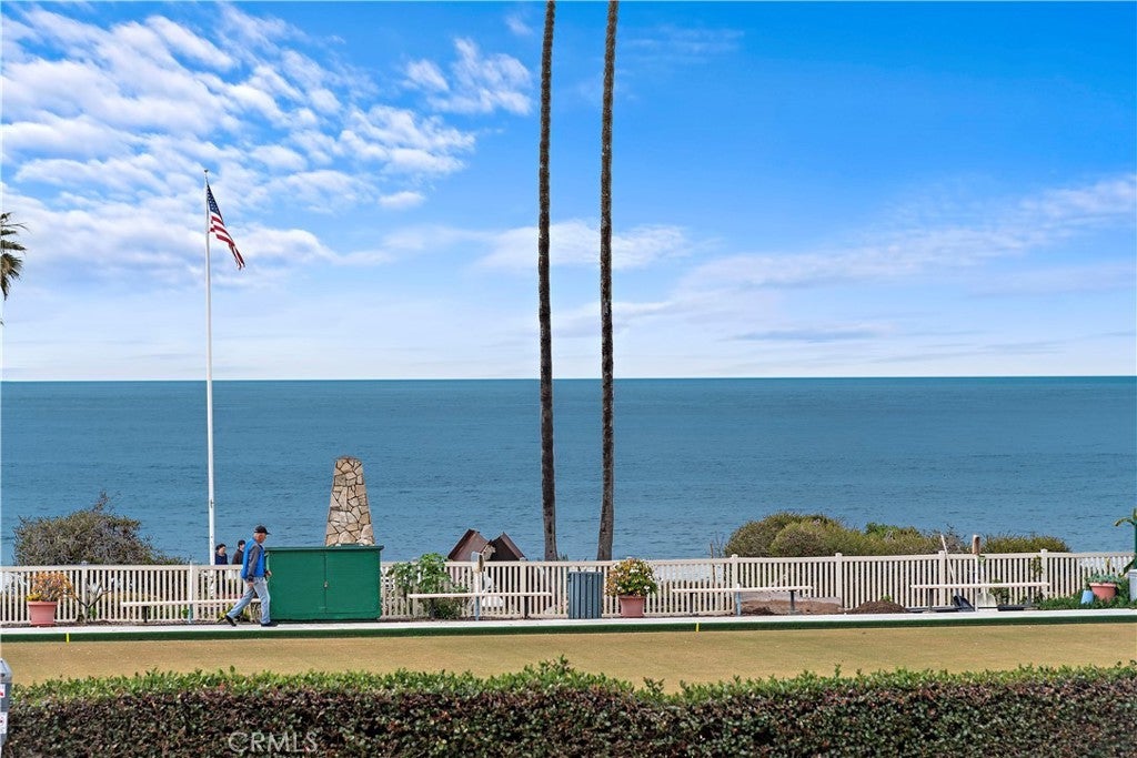This stunning, light-filled two-bedroom, two-bathroom furnished unit is available for long term rental. As you enter the main living area, you'll find a spacious living room, dining area, and gourmet kitchen. The living room features a cozy fireplace and a smart TV for your entertainment. The kitchen boasts high-end appliances, including a dishwasher. The larger master suite features a king-size bed and an en-suite bathroom with dual sinks. The second bedroom has two twin beds that can be combined to make a king-size bed, with a bathroom in the hall featuring a tub and shower. A small office/closet is located in the hall. Take in the stunning ocean views from the sitting area with chairs and a table in front of the unit or relax at the community BBQ area with chairs and a table. This beautiful property is located across from the park and beach, providing the ultimate location for your stay. Walk everywhere! The rental includes a one-car garage. Don't miss out on the opportunity to experience luxurious living in this stunning unit, where style and comfort meet in perfect harmony.