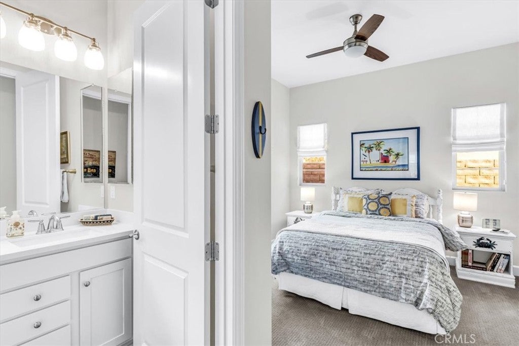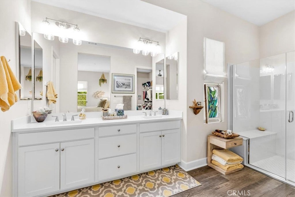 Imagine starting your day in a peaceful single level home where the morning light fills every corner and life finally feels as effortless as you hoped it would. This 2 bedroom, 2.5 bath, 1,864 square foot single family home in the 55+ community of Arista at Esencia in Rancho Mission Viejo offers the comfort, beauty, and easy living that so many dream of. Step inside and you immediately feel the openness of the floor plan, designed for relaxed indoor and outdoor living. Slide open the sliding window panels and let the fresh breeze flow through as you sip coffee on your gorgeous lanai. When friends stop by, this space becomes the perfect place to gather and lets you enjoy it any time of year. The kitchen will quickly become your favorite place to create meals and share conversations. It features white shaker cabinets, quartz countertops, stainless steel appliances, and a 5 burner gas range. It opens to the living and dining areas so everyone stays connected during holidays, celebrations, or nights with family. There is also an optional retreat or office area that can be your quiet reading nook, hobby space, or a peaceful place to focus. Your private primary bedroom offers everything you need to unwind. The attached master bathroom includes dual vanity sinks, quartz countertops, a glass enclosed shower, and a spacious walk in closet. The second bedroom has its own ensuite bathroom, giving guests a place to relax and feel right at home. Additional thoughtful touches include an inside laundry room, a tankless water heater for long warm showers, and energy efficient solar panels to help keep life simple and efficient. Tucked back at the end of a quiet cul-de-sac, it's location gives you the privacy and a restful environment that make every day feel like a retreat. Life in Rancho Mission Viejo is where the real fun begins. You can start the morning with a swim, meet friends at the firepits to catch up, plan a family barbecue at one of the many picnic areas, or join a group poolside. When you are feeling active, head to the courts for a game of pickleball or explore the many community gathering spaces. One local favorite is the Hilltop, which includes a stylish bar and game room that give friends a comfortable place to gather and socialize. The amenities are designed to bring people together and make every day feel like a vacation. This home brings together peace, comfort, connection, and the best that Southern California living has to offer.