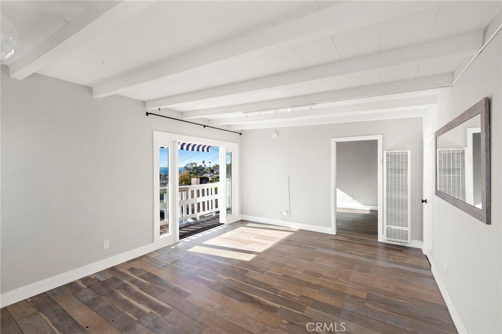 Beautiful North Laguna upper unit with stunning ocean views, located just minutes from Crescent Bay Beach, Diver’s Cove, Fisherman’s Cove, and Heisler Park. This charming upstairs 1 bedroom, 1 bathroom home features an ocean-view balcony and inviting coastal ambiance throughout. Through the private entry gate, enjoy a ground-level fenced outdoor entertaining area with a natural flagstone patio surrounded by tropical landscaping and lawn. Inside, the home offers wood-beamed ceilings, wood flooring, and an upgraded kitchen with granite countertops, custom cabinetry, dishwasher, and ocean views. The prime North Laguna location provides quick access to beaches, coffee shops, grocery stores, restaurants, art galleries, downtown, and nearby hiking trails. The free local open-air trolley stop is just steps away, making coastal travel effortless. Two-car garage included. Experience the charm and convenience of North Laguna living with sweeping ocean views and beachside lifestyle.