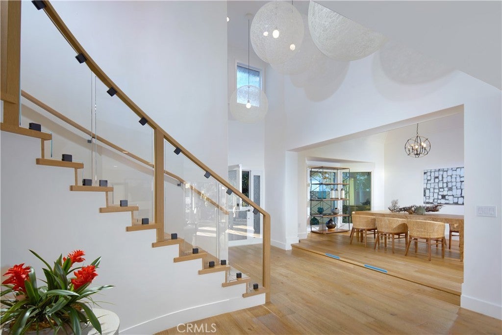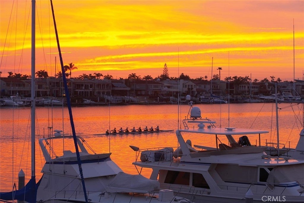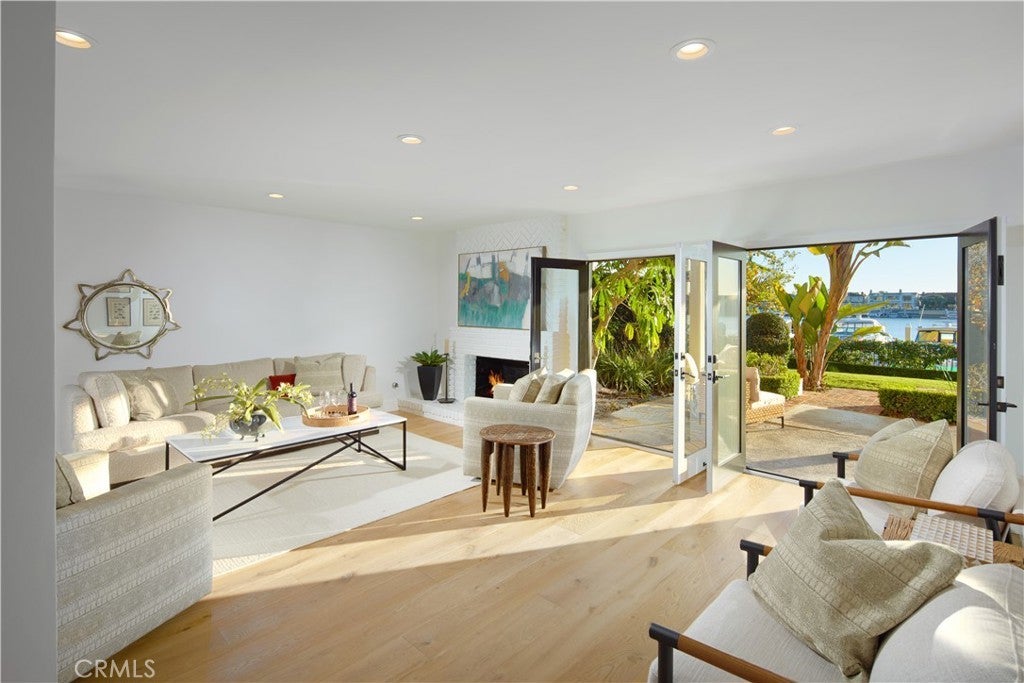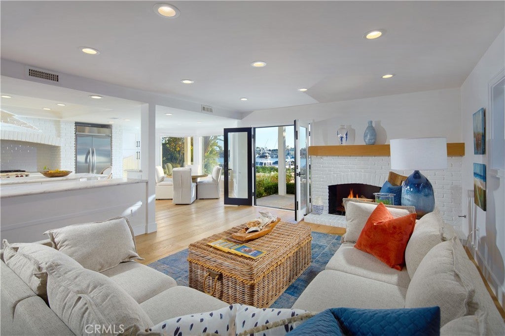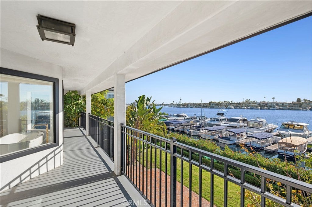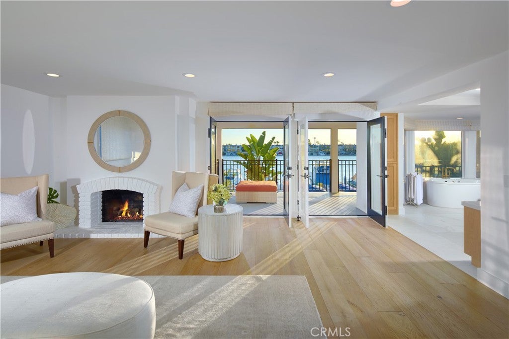 Set within the prestigious, 24-hour guard-gated Bayshores community, this classic traditional bayfront residence embodies the timeless elegance of an East Coast–inspired waterfront home. Known for its mature, tree-lined streets, iconic coastal architecture, two private bay beaches, clubhouse, private marina, and exclusive access to the Balboa Bay Club, Bayshores remains one of Newport Beach’s most coveted bayfront enclaves. Positioned along one of the longest and most desirable stretches of bayfront in the community, the home enjoys sweeping, ever-changing views of the Newport Channel. From vibrant sunrises to glowing sunsets, the outlook is animated daily by sailboat regattas, morning crew workouts, and the gentle cadence of harbor life. The interior is defined by white oak hardwood floors throughout and a dramatic two-story foyer highlighted by a circular staircase with white oak handrail. Formal and casual living spaces flow seamlessly, including a formal dining room with vaulted, grooved ceilings and a spacious living room centered around a white brick fireplace with French doors opening directly to the bay. The updated kitchen features marble countertops, stainless steel appliances, a breakfast nook, and opens to an adjacent family room with fireplace—ideal for everyday living and entertaining. Outdoors, a generous bayside patio with brick hardscape and lawn creates an inviting setting for entertaining or simply enjoying life at the water’s edge. The main level also includes a bedroom with adjacent bath appointed with brass fixtures. Upstairs, additional bedrooms are complemented by a playroom with laundry and a private primary suite offering a fireplace, walk-in closet with built-ins, private balcony, and an elegant bath with white oak cabinetry, dual vanities, freestanding jetted tub, separate shower, and water closet. Enjoy Duffy cruises to nearby harbor destinations, waterfront dining, and nightlife, all while remaining just minutes from the shops and fine dining of 17th Street, Lido Village, and Fashion Island—offering a rare combination of privacy, tradition, and quintessential Newport Beach coastal living.