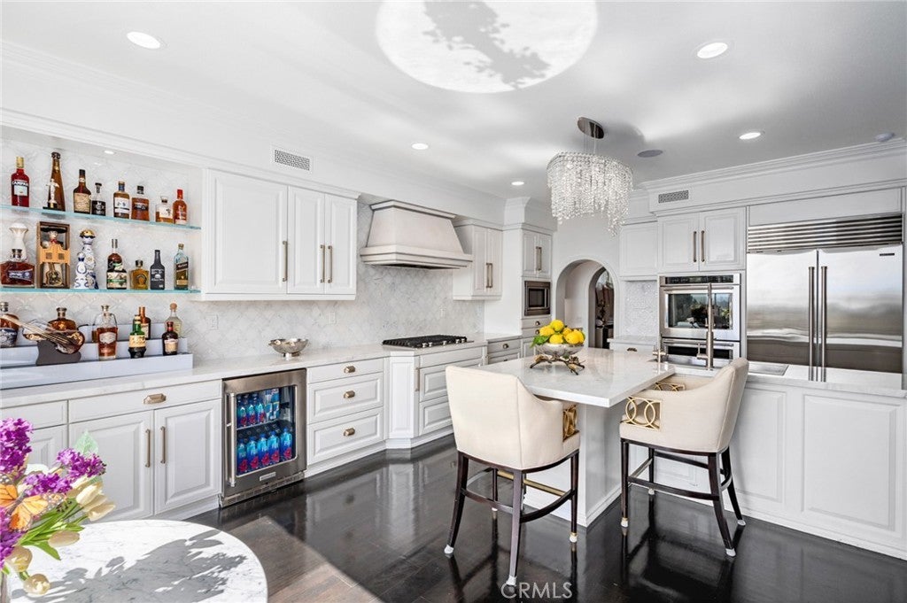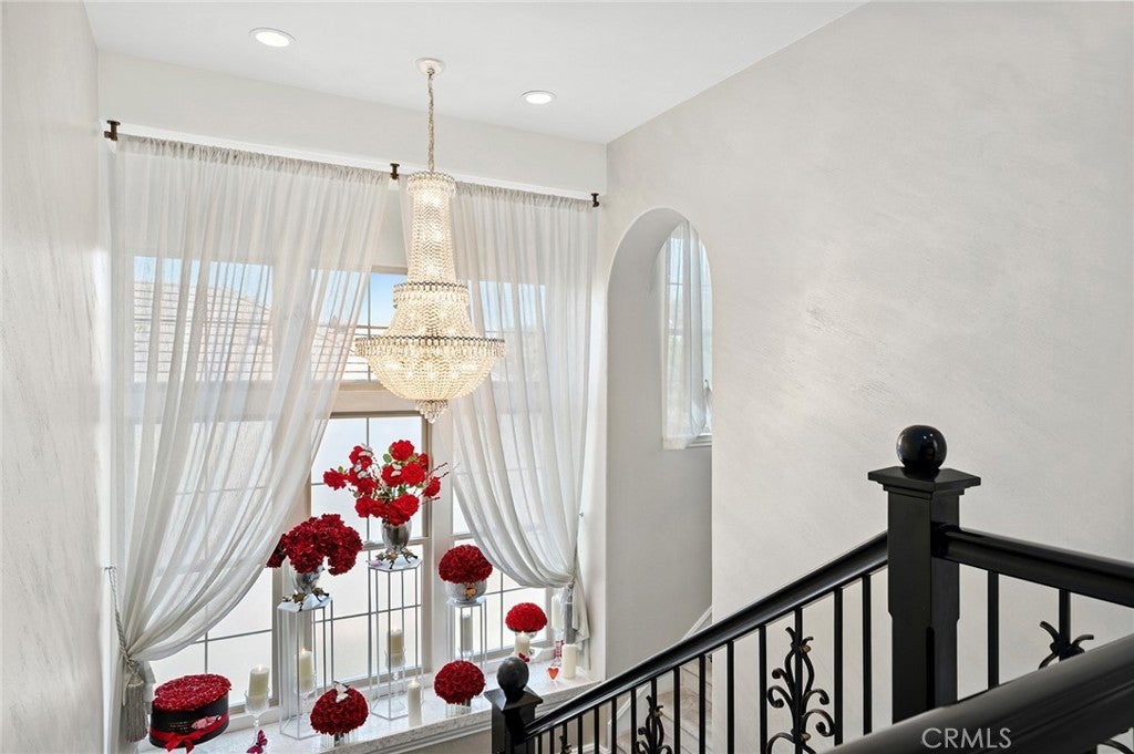 Indulge in the serenity of elevated ocean-view living in Newport Coast at this exceptionally private estate, nestled on an oversized lot behind the guarded gates of Newport Ridge North. Thoughtfully upgraded, this refined residence captures breathtaking vistas of the Pacific Ocean, coastline and sparkling city lights. Set on a tranquil cul-de-sac with approximately 9,322 square feet of private grounds, the property offers a rare opportunity to enjoy sophisticated resort-style living. The interiors are as impressive in size as they are in design, encompassing nearly 4,432 sqft. of curated living space. Crafted for seamless indoor-outdoor living, the home features 5 ensuite bedrooms, including a main-level guest suite with separate access, and 5.5 opulent baths, ensuring comfort and flexibility. Entertaining is effortless with formal spaces complemented by an executive-style office on the main level, and an all-season loggia that opens to the outdoors—ideal as a game room, lounge, or additional gathering space. The chef-caliber kitchen is appointed with custom cabinetry, marble countertops, premium appliances, and a striking built-in bar. An oversized eat-in island anchors the space and flows seamlessly into the family room and expansive backyard. The backyard is a sanctuary featuring tranquil water features, outdoor kitchen with built-in BBQ, and multiple spaces designed for entertaining and relaxation. Upstairs, the primary suite serves as a peaceful retreat, offering sweeping ocean and city-light views. Enjoy a cozy fireplace, boutique-style walk-in closet with illuminated custom built-ins, and a spa- inspired primary bath with dual vanities, a soaking tub, walk-in shower, and a secondary walk-in closet. A private balcony invites you to take in panoramic views— perfect for morning coffee or sunset reflections. Designed for both intimate moments and larger gatherings, the estate also includes a detached suite offering flexible living arrangements. An oversized two-car garage with built-in workspace enhances everyday functionality. The community’s prime location provides access to resort-style amenities including a clubhouse, pool and spa, sports courts, parks, and playgrounds—all within an exclusive and meticulously maintained setting. With dual gated entrances, you’ll enjoy easy proximity to world-class shopping, fine dining, top-rated schools, scenic trails, pristine beaches, and John Wayne Airport. This is Newport Coast living at its finest.