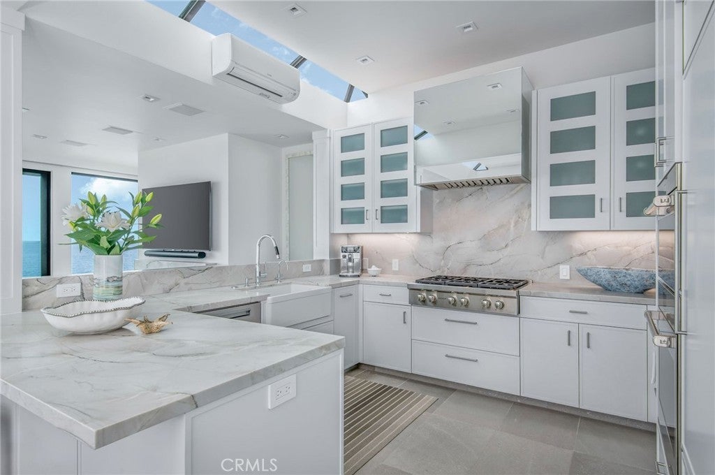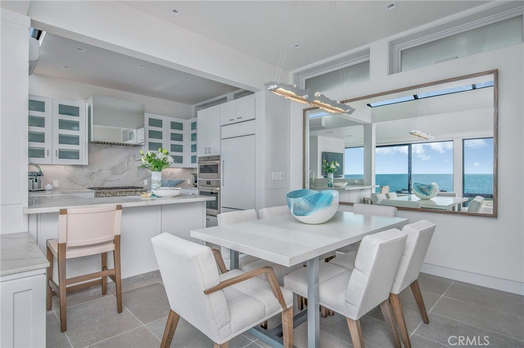 An extraordinary example of contemporary Chris Abel-designed architecture with unmatched ocean views. Artistically refreshed in 2023, this private estate with direct beach access offers nearly three thousand square feet of meticulously designed interiors. Thoughtfully integrated with its surrounding environment, the property was designed to maximize the striking coastal views with floor-to-ceiling windows and multiple glassed-in patios. The grand great room wows with panoramic vistas and is an ideal area to entertain as well as unwind, with the living, dining, and kitchen spaces seamlessly blending together to create a serene oasis. Fully renovated and ready for the most discerning home chef, the kitchen offers top-of-the-line appliances, new cabinetry with plentiful storage, and tasteful stone countertops. The living area is anchored by a fireplace and features access to a large balcony which seemingly floats above the sand below. Breathtaking views of the Pacific continue in the retreat-like primary suite with its multiple windows and another of the home’s decks. The secondary bedrooms are also ocean-facing, offering guests an unparalleled experience. Every detail of the exterior space has also been considered, with patio areas and an in-ground spa for taking in the coastal panoramas. Fully modernized for everyday living, this property is outfitted with a state-of-the-art audiovisual system, automatic Lutron shades, and a two-car garage. Stunning, updated interiors, endless views, and a convenient location make this estate truly one of a kind.
