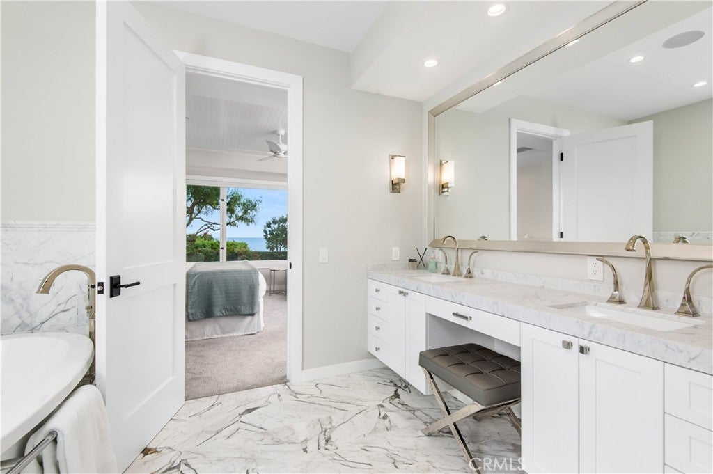 Breathtaking panoramas of the Pacific Ocean, meticulously revived interiors, and elevated outdoor living combine to create a quintessential Anders Lasater Architects-designed coastal retreat. Nestled within the coveted Fisherman’s Cove, Cliff Drive offers a meticulously refreshed contemporary aesthetic coupled with the privacy of a perched lot. Blending elegance and comfort, the main level features an open great room concept with access to a large deck with a fireplace. The ocean-facing living and dining areas flow seamlessly into the home’s gourmet kitchen, allowing for effortless everyday enjoyment or entertaining on special occasions. Below, a more casual secondary living room shares the floor with two of the home’s ensuite bedrooms. The primary suite is a luxurious haven with a marble-clad bathroom complete with a standalone tub, walk-in shower, and an oversized closet. Airy and bright, the owner's bedroom offers access to a large patio with an in-ground jacuzzi, multiple sitting areas, and a fire pit. The remaining secondary sleeping quarters include an upper-level retreat with its own living area complete with a wet bar, a fireplace, and an ocean-facing balcony. Amenities of this home include a two-car garage and a gated motor court. Iconic views, immaculate interiors, and a fantastic location near all Laguna Beach is known for create the ultimate coastal haven.