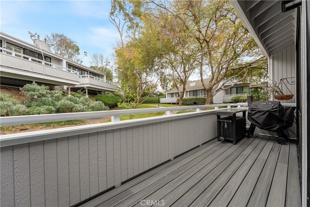 Welcome to beach living in this bright and spacious unit in Newport Crest with a peek-a-boo ocean view. This two-bedroom, two-bath residence features new flooring, high ceilings, and expansive front and back decks that allow you to fully enjoy this exceptional coastal location. The completely remodeled kitchen showcases a large island and opens to an airy floor plan with a generousliving area. It is an ideal space for everyday living, highlighted by cathedral ceilings, a fireplace, and tall sliding doors that lead out to the back deck. The primary suite offers an oversized walk-in closet, a large dual-sink vanity, and sliding doors that open to the deck. The secondary bedroom includes an ensuite bathroom, large windows, and ample closet storage. Located on the lower level, the oversized two-car garage features a dedicated laundry area and plenty of room for storage. Enjoy the convenience of walking to the park or biking to the beach. Newport Crest is ideally situated near the beach, Sunset Ridge Park, Hoag Hospital, shopping on 17th Street or at Fashion Island, and a wide variety of restaurants. The community also offers a pool and spa, tennis courts, and a clubhouse.