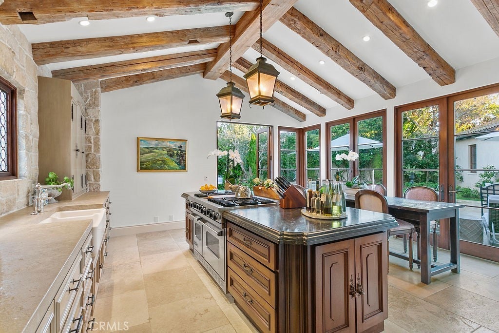 Primary Suite, Balcony, Bar, Beamed Ceilings, Built-in Features, Cathedral Ceiling(s), Dressing Area, Eat-in Kitchen, Entrance Foyer, Furnished, High Ceilings, Open Floorplan, Pantry, Recessed Lighting, Separate/Formal Dining Room, Stone Counters, Storage, Utility Room, Wet Bar, Wired for Data, Wired for Sound