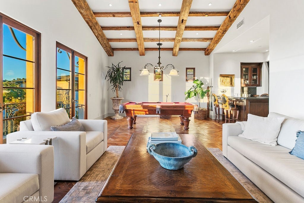 EMERALD BAY | LAGUNA BEACH | 2026 SUMMER RENTAL | Tucked along the coveted north end oceanfront of the gated enclave of Emerald Bay, this exceptional residence offers a rare summer leasing opportunity where timeless elegance meets the relaxed luxury of coastal California living. Spanning approximately 4,645 square feet, the home is a masterclass in refined design and elevated comfort. Four generously scaled bedrooms and four beautifully appointed baths provide an ideal balance of privacy and sophistication, each space thoughtfully curated with high-end finishes and enduring style. The interiors unfold through a light-filled, open-concept floor plan that seamlessly connects the main living spaces, all framed by a lavish pool and garden setting. Designed for both effortless entertaining and quiet retreat, the living and dining areas exude warmth, scale, and polish. At the heart of the home, the chef’s kitchen is equipped with top-tier appliances and custom cabinetry, flowing naturally into the surrounding gathering spaces—perfect for summer evenings spent indoors or out. On the upper level, the primary suite serves as a private retreat with a terrace overlooking the pool and gardens, along with fireplace, marble bathroom, walk in closet and small office. Additional space includes a large family room with dramatic ocean views, a fireplace, wet bar and pool table. Outside, a private resort-style retreat awaits. A sparkling pool and serene spa anchor the outdoor living experience, creating an idyllic backdrop for sun-soaked days, sunset cocktails, and starlit nights. Set on an approximately 9,990-square-foot lot, the grounds offer ample space for entertaining, relaxation, and enjoying the ocean air. More than a summer rental, this residence is an invitation to experience the unparalleled Emerald Bay lifestyle. Residents enjoy access to exclusive amenities including a private beach, tennis and pickle-ball courts, swim center, parks, and year-round recreation—ensuring every day feels like a vacation. A rare opportunity to lease a premier coastal estate in one of Laguna Beach’s most prestigious seaside communities. Available June, July, August and September 2026.