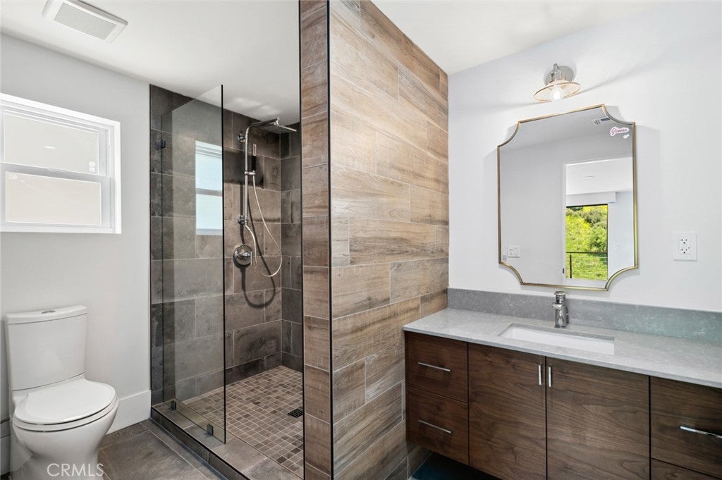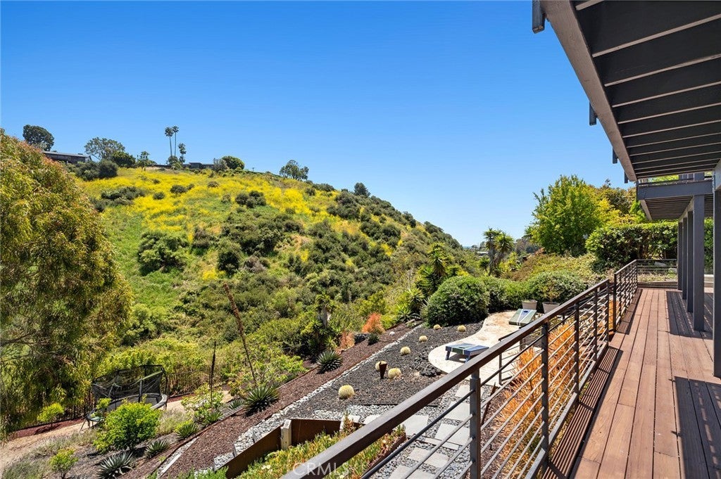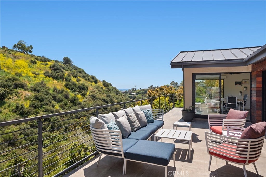 Showcasing a modern design aesthetic with exceptional architecture inside and out, this custom Laguna Beach home brings the beauty and serenity of canyon and evening-light views into fabulously open living spaces. Located on an enormous homesite of more than 53,000 square feet at the end of a cul-de-sac just moments from the vibrancy of Laguna Village, the residence reveals lush landscaping that complements stone, wood and steel exterior materials. A large glass entry door opens to a stunning interior where an organic blend of cohesive elements is embellished with on-trend decor. An abundance of natural light streams through vast windows and slide-away pocket doors, creating a seamless indoor/outdoor ambiance while illuminating approximately 5,420 square feet that includes five bedrooms, four of which are en suite, and seven baths. Each level offers easy access to the outdoors, with the main floor’s dining room, fireplace-warmed living areas, and kitchen flowing to a deck to create one large and open living space.Imagine the memories created while entertaining friends and loved ones during special celebrations, all with tranquil canyon vistas as a peaceful backdrop. Custom wood cabinetry and Mont Blanc quartzite countertops capture the eye in a kitchen with oversized island, open shelving and a full tile backsplash. Top appliances include a six-burner Thermador range and a built-in refrigerator and dishwasher from Miele. A junior primary suite and an ocean-view office with deck access are also featured on this floor,giving it the feel of single-level living.Follow a dramatic floating staircase to the second floor, which hosts a family room, secondary suites and the primary suite.For the ultimate in personal luxury, this grand suite is refined with generous proportions. Opening to the deck, the suite hosts a fireplace and a walk-in closet with custom built-ins.The primary bath is infused with the feel of a five-star resort,complete with freestanding tub, oversized shower, two sinks and gorgeous stone finishes.The lowest level is primed for entertaining with a game/media room, fireplace, wet bar,378-bottle wine cellar, guest suite,and a towering two-story wall of glass.Solar power,a standing-seam metal roof, and an attached two-car garage are joined by ample guest parking. Minutes to the sand, top-rated schools, galleries,restaurants and trails,this showplace captures the unique energy of Laguna Beach in one special place that you will be proud to call home.