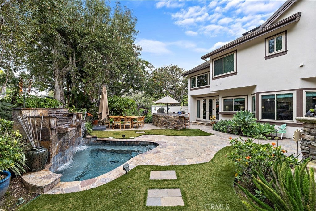 Welcome to 1 Belaire, an exceptional residence nestled within the prestigious gated enclave of Crest de Ville in Laguna Niguel. Offering approximately 3,715 square feet of thoughtfully designed living space, this impressive home features four generously sized bedrooms, three well-appointed bathrooms, and an expansive bonus room ideal for a media lounge, home office, or game room. Upon entry, the home showcases an elegant blend of porcelain tile and plush carpet flooring, creating warmth and sophistication throughout. The recently renovated chef’s kitchen is the heart of the home, equipped with stainless steel appliances, including a cooktop, wall ovens, a dishwasher, a refrigerator, and custom cabinetry—perfectly suited for both everyday living and entertaining. Formal living and dining spaces provide refined areas for gatherings, while the inviting fireplace adds character and comfort. The primary suite serves as a private retreat, complete with a spacious walk-in closet and a spa-inspired ensuite bathroom featuring dual vanities, granite countertops, and a separate shower. Each secondary bedroom is generously proportioned, offering flexibility and comfort for family and guests alike. Outdoor living is a standout feature, with a private, fenced backyard designed for relaxation and entertaining. Enjoy a built-in barbecue, a spa, and strategically placed lighting that enhances ambiance and usability. Ideally located within one of Laguna Niguel’s most desirable gated communities, this residence blends modern upgrades with timeless elegance in a serene coastal setting. An exceptional opportunity to own a refined home in Crest de Ville—schedule your private showing at 1 Belaire today.