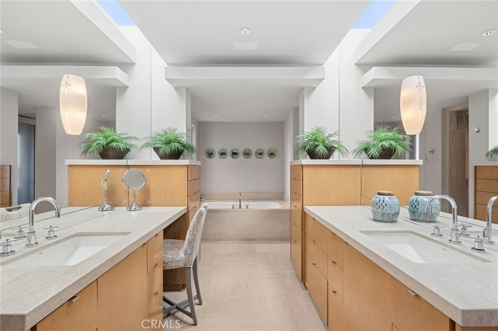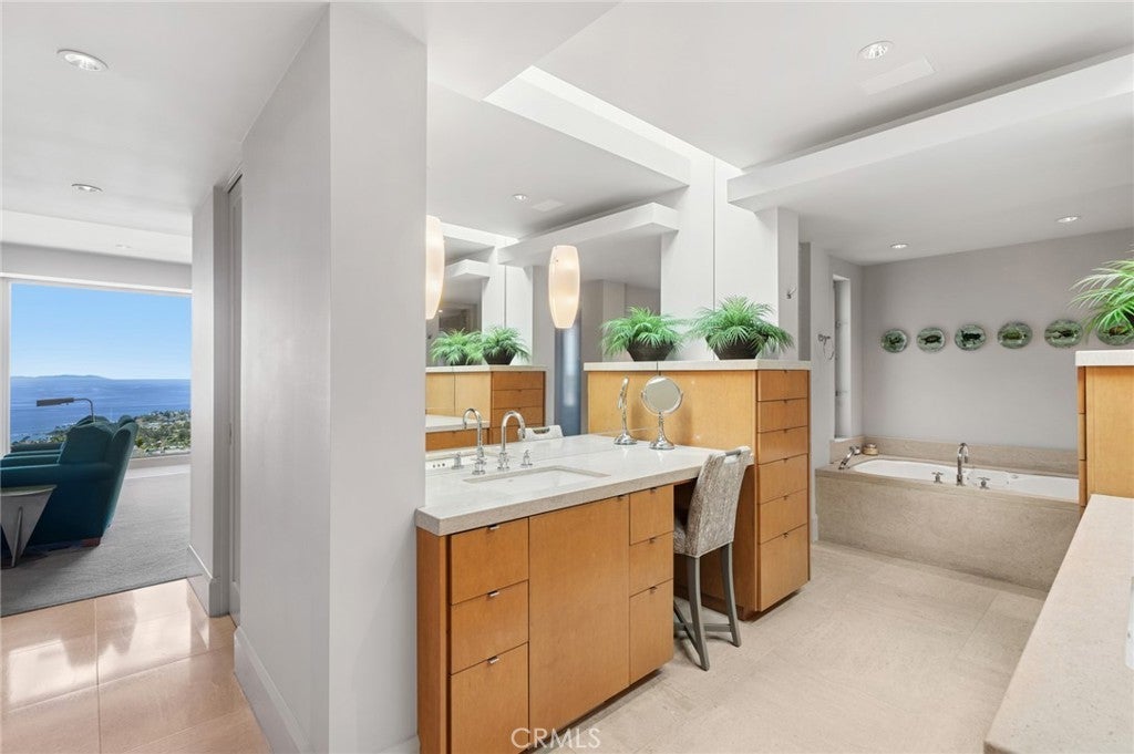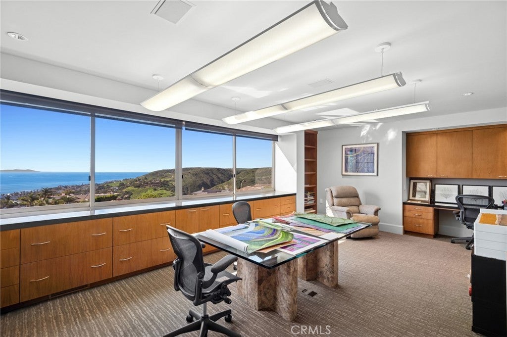 Sweeping ocean views from every room define this substantial custom residence, set on a wide-frontage 13,360-square-foot lot. Encompassing approximately 5,603 square feet, the four-bedroom, four-and-one-half-bath home is thoughtfully designed to maximize light, with dramatic coastal panoramas complemented by Catalina Island and city-light views that enhance the living spaces. Located on a cul-de-sac in the sought-after Mystic Hills neighborhood and crafted by contractor Mark Falcone with interiors by Sheldon Harte, the home presents a refined material palette anchored by limestone flooring throughout most living areas, with select accents of wood. The living room serves as a striking gathering space, highlighted by a gas fireplace with a black granite surround and Macassar ebony mantel. Pacific Ocean, canyon, and city-light views lend ambiance to dinner parties and relaxed evenings. Designed to blur the line between indoors and out, the residence features floor-to-ceiling walls of glass, while the exterior reflects timeless architectural character. Generously sized decking off a secondary grand living room with a bar area extends the living spaces and features an outdoor kitchen and vistas that encompass colorful sunsets and ever-changing skies. The primary suite near the main level boasts ocean-view deck access, a fireplace, generous walk-in closets, and a spa-worthy bath with a steam shower, creating an elegant, retreat-like ambiance. The kitchen is anchored by a large island and equipped with a 5 Star gas range, Thermador double ovens, two Bosch dishwashers, and a Sub-Zero refrigerator. Breathtaking ocean and whitewater views extend to the dining area, creating an inspiring setting for morning coffee. Low-maintenance, water-wise landscaping surrounds the residence, complementing the limestone decks and outdoor living areas. A three-car garage completes the property, offering ample parking and storage. With expansive views, generous proportions, and a thoughtful blend of timeless materials and modern comforts, this residence offers a refined coastal living experience in Laguna Beach. This one-of-a-kind home delivers an exceptional lifestyle with close proximity to beaches, restaurants, and shopping. Montage Resort and The Ranch at Laguna Beach are just minutes away, and Laguna’s village and Main Beach are only moments away. Imagine sharing a residence of this caliber with the people you love.