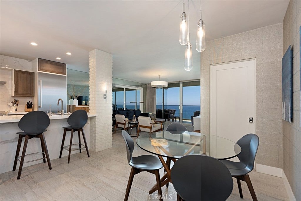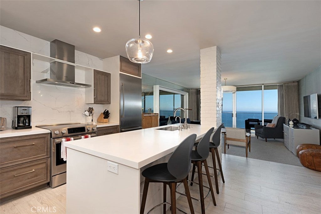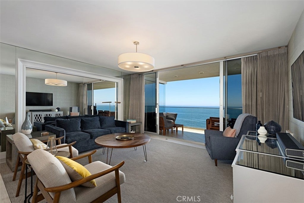 Experience true oceanfront living at this stunning top-floor residence in Laguna Lido. Wake up to panoramic coastline views, soothing ocean breezes, and the sound of waves just outside your door. This beautifully remodeled and fully furnished 2-bedroom, 2-bath condo offers a sophisticated contemporary design paired with the relaxed elegance of beachfront living. The open-concept living, dining, and kitchen areas are thoughtfully designed to maximize sit-down ocean views, extending into the serene primary suite where you can enjoy sweeping water vistas from the comfort of your bed. Expansive windows frame the dramatic north coastline, creating a light-filled interior that feels both luxurious and inviting. Additional highlights include in-unit washer and dryer, high-end finishes throughout, and turnkey furnishings for effortless living. Laguna Lido offers resort-style amenities including a private heated pool overlooking the sand, fitness center, steam room, game room, beach lockers, and secure direct beach access. An exceptional opportunity for an extended stay along the Laguna Beach coastline.
