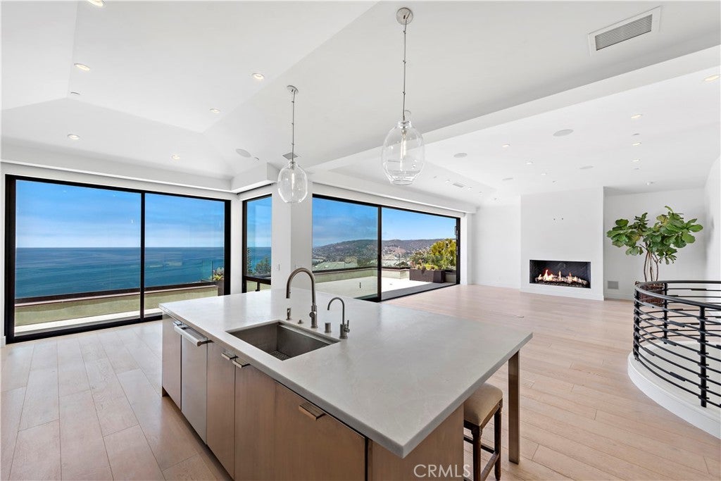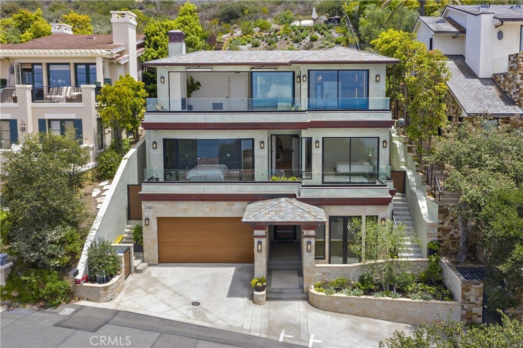 Enjoy outstanding ocean and coastline views from this incredible custom view home. Built in 2020 this impressive soft-contemporary residence features a living room and formal dining room both with a fireplace, four ensuite bedrooms and 5.5 baths. Open to living areas, the custom designer kitchen has black granite and white marble countertops, Meile and Thermador appliances, and a spacious island with seating. Pocket slide-away glass doors open to view terraces and balconies which bring living areas outdoors. High ceilings, French oak plank flooring, white walls, and high-end stone, wood, and tile finishes enrich the interior. All levels are served by an elevator and a spiral staircase that is illuminated by a circular skylight. Woods Cove is just down the hill, and 5-star resorts, golf, shopping and restaurants, and excellent schools are mere minutes from home.