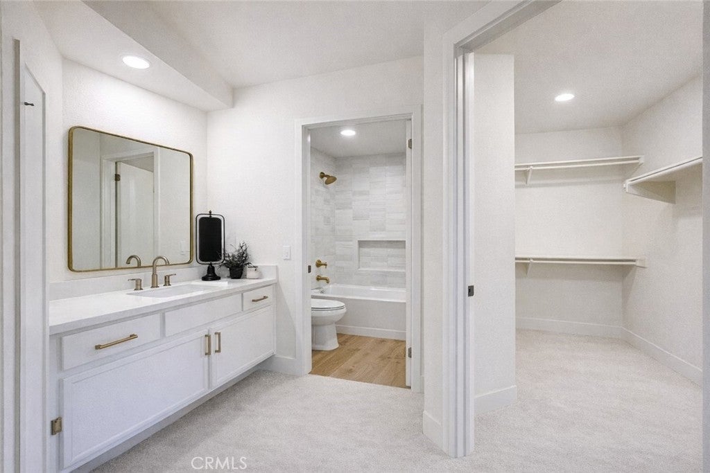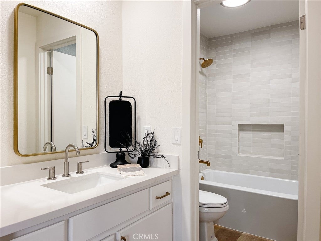 Experience the ultimate in coastal living with this beautifully renovated 1-bed / 1-bath top-floor, corner unit in the the Corniche community. Boasting a relaxed coastal feel, this light and airy condo features fresh interior paint and newer carpet flooring throughout, and wide-plank light wood laminate flooring in the kitchen and bathroom. The spacious living area is highlighted by a cozy fireplace, local mountain and neighborhood views, and a private balcony—perfect for enjoying your morning coffee or unwinding in the ocean breeze. The modernized kitchen offers generous counter space, ample cabinetry, sleek quartz countertops, and brand-new stainless-steel appliances, blending style and functionality seamlessly. The serene primary suite is a true retreat, complete with a walk-in closet, direct balcony access, and an en-suite bathroom featuring a custom soaking tub and shower, quartz countertops, and stylish finishes. This home is also equipped with a newer HVAC system for year-round comfort. Nestled within the prestigious Ritz Pointe neighborhood of Monarch Beach, this sought-after location is just moments from scenic hiking and biking trails, world-class golf at Monarch Beach Golf Links, the Waldorf Astoria, Salt Creek Beach, and premier shopping and dining options. Residents enjoy resort-style amenities, including a community pool, spa, fitness facilities, park, and 24-hour gated security. Don't miss this incredible opportunity to live the coastal lifestyle you've been dreaming of. This exceptional home won’t last long—schedule your private tour today! (Note: Carpet shown in select images was virtually rendered due to timing of installation. The carpet has since been installed and is present in the property.)