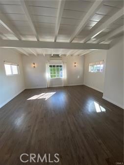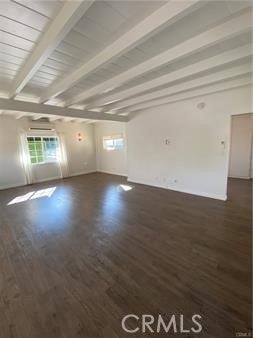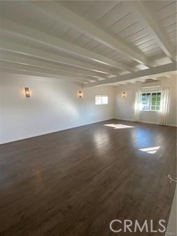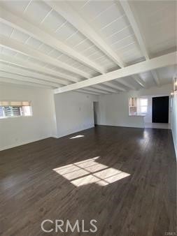 Beamed Ceilings, Built-in Features, Eat-in Kitchen, High Ceilings, Open Floorplan, Unfurnished, Bedroom on Main Level