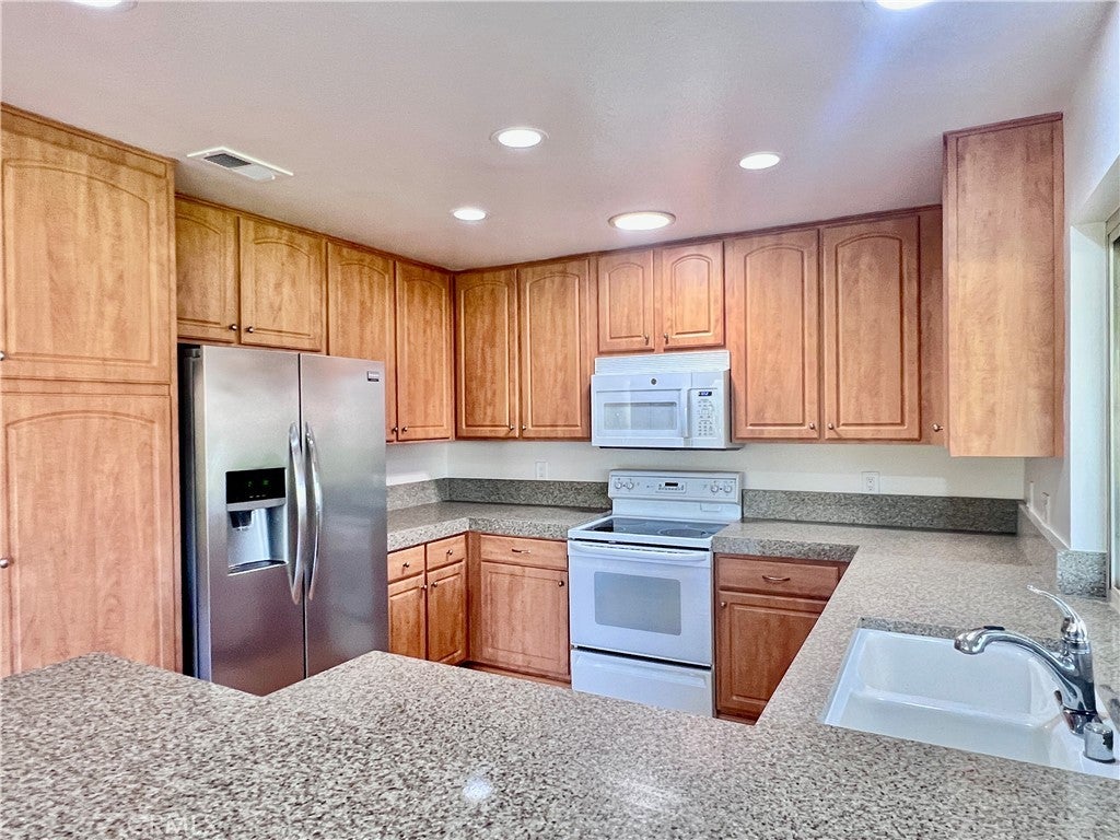 Welcome to this charming single-level home in the desirable 55+ community of San Juan Hills East. This attached residence offers comfort, functionality, and an ideal location near historic downtown San Juan Capistrano. Step inside to a welcoming living and dining room concept centered around a cozy fireplace. The updated kitchen opens seamlessly to the main living areas, while sliding glass doors lead to a spacious private patio overlooking a lush courtyard with green grass and mature trees — the perfect setting for morning coffee or relaxing afternoons. New paint and carpet in the bedrooms, and recessed lighting in main living areas. The secondary bedroom is generously sized, ideal for guests or a home office. The primary suite is spacious and features built-in cabinetry and its own private patio access, creating a peaceful retreat. Complete with a detached two-car garage, this home presents a wonderful opportunity to enjoy low-maintenance living in a prime South Orange County location.