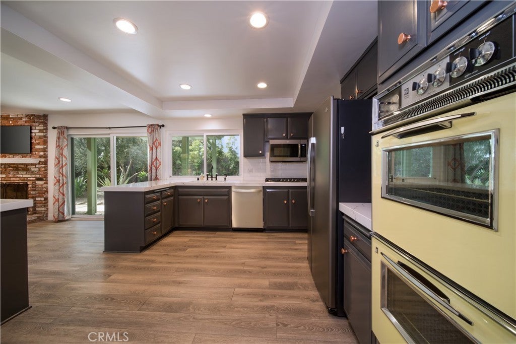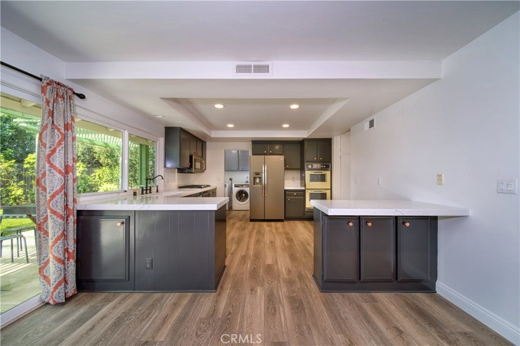 If you are searching for the ideal home, look no further than 25256 Pacifica Avenue! Prefect for a couple or family! Completely remodeled inside and out, this 3 bedroom, 2 bathroom gem boasts high-end touches throughout. Lots of natural light. Enjoy warm Southern California days in your gorgeous backyard complete with custom landscaping, bar counter seating, new fencing, high-quality artificial turf, and brand-new pergola. Both bathrooms feature beautiful tile work, with the sizable primary bathroom featuring dual sinks. custom cabinetry and custom shower glass. The gourmet chef’s kitchen features ample counter space, a large French door refrigerator, stainless steel dishwasher & microwave, gas cooktop, and stunning vintage double ovens. Just off the kitchen, the family room features a lovely brick fireplace, wall mounted flatscreen television, and slider door access to the backyard. The large entry room offers additional flexibility and can be used as a living room, formal dining room, or sitting area. You’ll find parking a-plenty thanks to the long driveway and two-car garage complete with new epoxy flooring and wall-mounted storage cabinets. Additional quality-of-life enhancements include air conditioning, a separate laundry room in-house, and lots of natural light. Just minutes away from a plethora of shopping & dining options, as well as elementary, middle, and high schools, 25256 Pacifica Avenue is one of a kind! Welcome home!