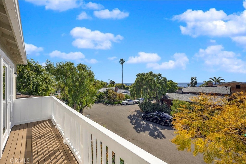 Ideally located in the heart of Laguna Village, this charming beach cottage offers sweeping ocean and Catalina views on an exceptionally private lot. Inviting light-filled living room featuring a dramatic skylight, recessed lighting, and a cozy gas fireplace. This pristine 4-bedroom, 3-bath home offers a spacious primary suite on the main level, along with two additional bedrooms and a full bath. Upstairs is a second primary suite with sweeping Ocean Views that can also be used as a den, office or game room. Wood flooring runs throughout the home, complementing the updated galley kitchen equipped with an electric range, microwave, dishwasher, and ample cabinetry. A convenient laundry closet and dedicated workspace make everyday living effortless. The attached two-car garage features built-in storage and tall ceilings, plus two additional driveway parking spaces. There is a view porch in the front perfect for enjoying ocean breezes, and a private rear porch off one of the main-level bedrooms. Mature landscaping and a generous side yard enhance the home’s serene, secluded feel while embracing the seamless indoor-outdoor lifestyle. Just moments from world-class beaches, downtown dining, shopping, and all that Laguna Beach has to offer. This exceptional property captures the very best of coastal living.