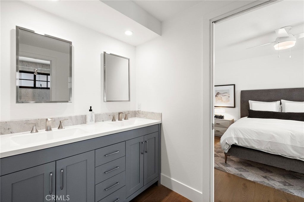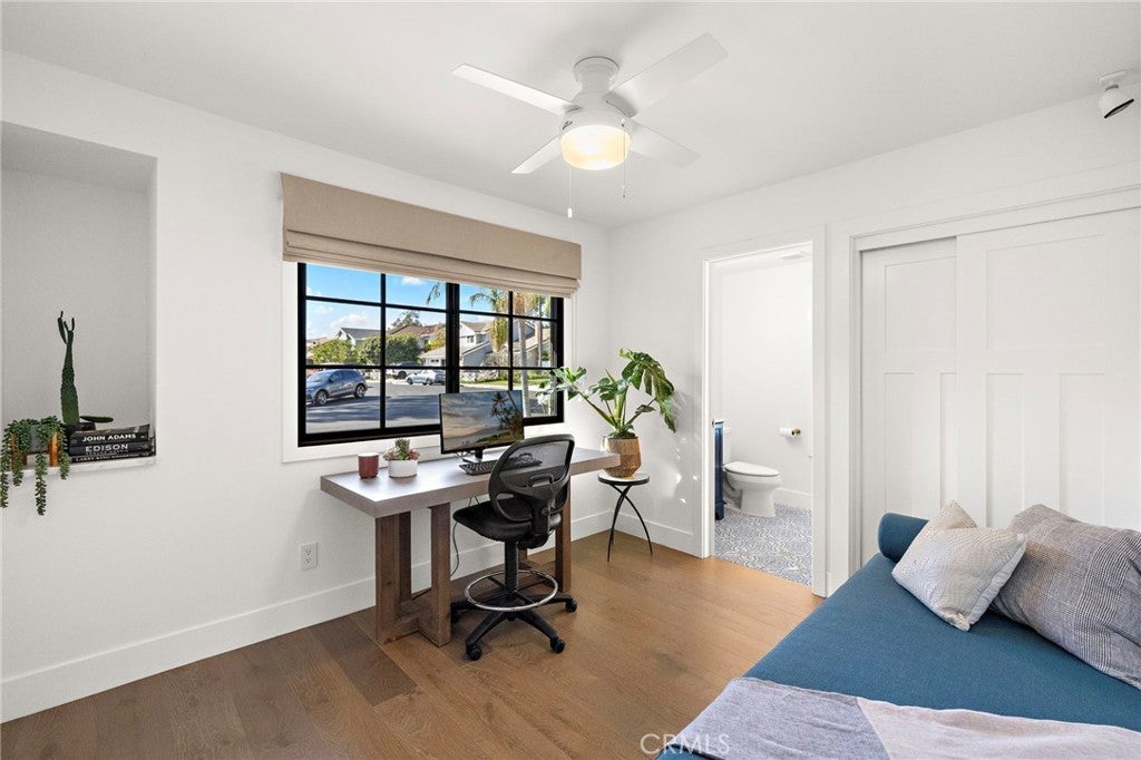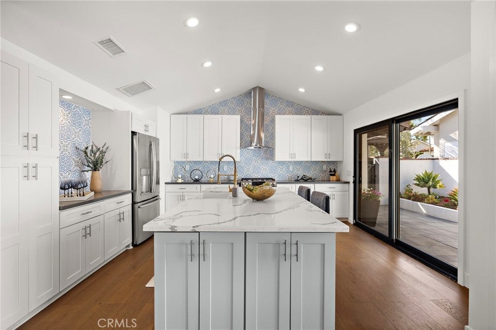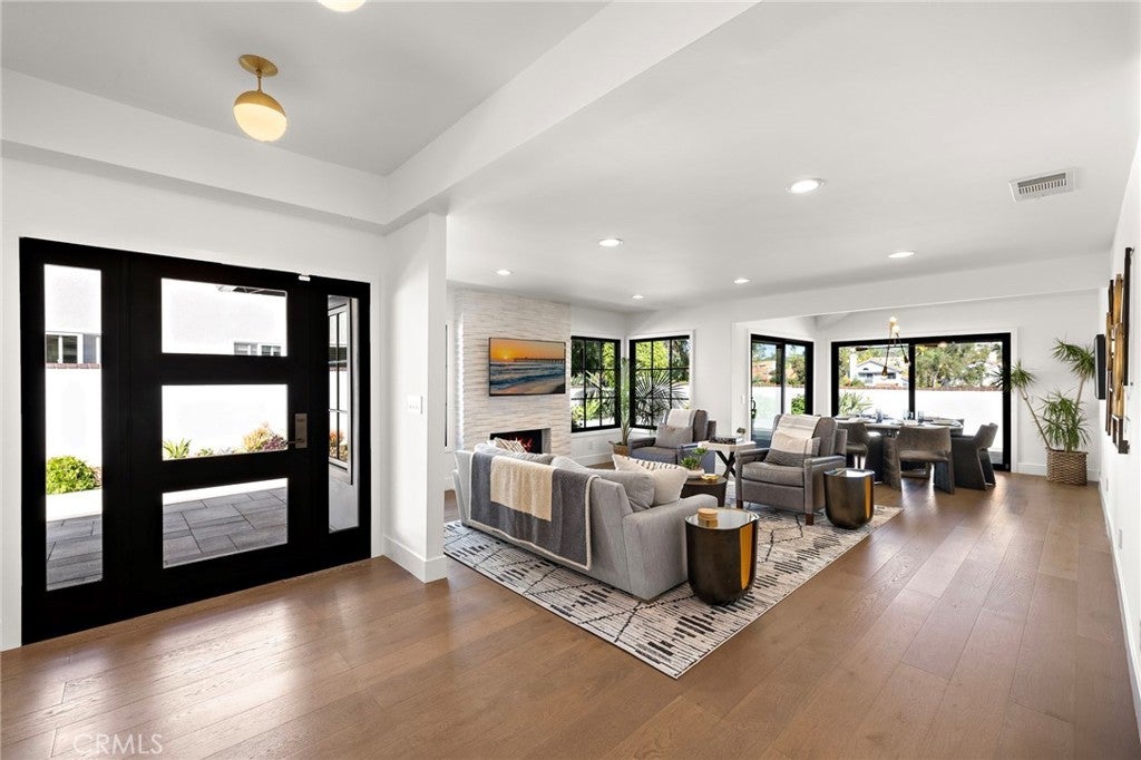 Completely reimagined with designer finishes and exceptional attention to detail, this beautiful and rarely available, remodeled single-story home in the coveted El Niguel Heights neighborhood offers 4 bedrooms and 3.5 bathrooms. You'll find the main bedroom en-suite has a oversized closet with built in shelving, dual sinks, oversized shower and lit vanity mirrors. There is a Jack & Jill bathroom between two of the guest rooms and the fourth bedroom also makes a terrific office space. No expense has been spared in featuring Jeld-Wen aluminum clad windows, Garrison wide-plank engineered hardwood flooring, brand new drywall finished to an almost perfectly smooth level inside. The exterior showcases new smooth stucco, custom planters and walls, and elegant Belgard concrete pavers, complimented by gorgeous new landscaping that enhances the home's curb appeal and back yard's beauty. The primary and secondary bathrooms have been completely remodeled with honed marble tile and flooring, creating a timeless & luxurious feel. The powder room features Kalista & Kohler fixtures paired with Serena & Lily wallpaper for a refined, designer touch. Additional upgrades include Reformation lighting fixtures, new interior doors and baseboards, and new high-end roof gutters with custom drain pipes. Every detail has been thoughtfully upgraded, delivering model-home quality throughout. This stunning property is truly turn-key & ready for immediate move-in. A terrific place for family & entertaining. Welcome home!!