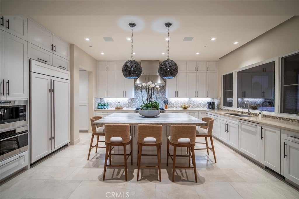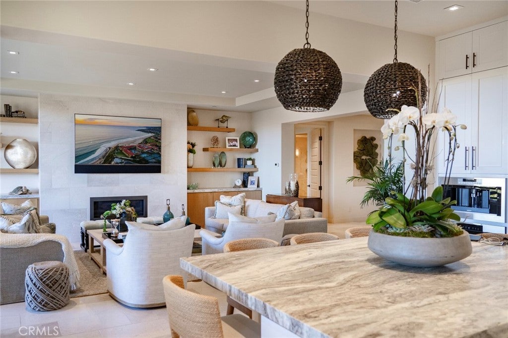 You’ve arrived. Single-level, penthouse-style living at The Grand Monarch, set within the grounds of Waldorf Astoria’s Monarch Beach Resort. Nearly 4,000 square feet of impeccably appointed interiors, paired with an expansive ocean-view balcony, creates a spacious, year-round retreat that lives like a private residence with the backdrop of a five-star resort. A private two-car garage and dedicated elevator access deliver everyday comfort and convenience, while the gated community offers true lock-and-leave peace of mind. This is the ideal second home or refined low-maintenance primary residence, without compromising on scale, location, or luxury. Upon entry, an impressive foyer leads upstairs via staircase or private elevator, opening to a dramatic single-level layout designed for both grand entertaining and relaxed coastal living. Statement stonework, designer wall treatments, and curated accent lighting add depth and character throughout. The great room flows seamlessly to the ocean-view balcony, where sunset skies and cool coastal breezes become part of the daily rhythm. The kitchen is outfitted for the serious home chef, anchored by an oversized island with seating and a premier Sub-Zero and Wolf appliance suite, including a steam oven, built-in espresso system, and secondary wine refrigeration. A formal dining room is complemented by a striking, temperature-controlled wine display holding more than 200 bottles, ensuring the home remains a natural gathering place for intimate dinners and larger celebrations alike. The primary suite reflects the caliber of a world-class resort, offering generous proportions, a spa-inspired bath with soaking tub, ocean and sunset views, direct balcony access, and a substantial walk-in closet with adjacent laundry for thoughtful convenience. Three additional en-suite bedrooms provide comfortable accommodations for family and guests, while a separate bonus room offers flexibility for an office, media space, or additional lounge. Life at The Grand Monarch includes direct access to the Waldorf Astoria’s pools, fitness center, championship golf, multiple dining venues, and beautifully maintained grounds with pathways leading toward the beach. Moments from Dana Point’s vibrant Lantern District and the revitalized harbor, and ideally positioned within an hour of Los Angeles, San Diego, and multiple major airports, this is coastal resort living at its most effortless and refined.