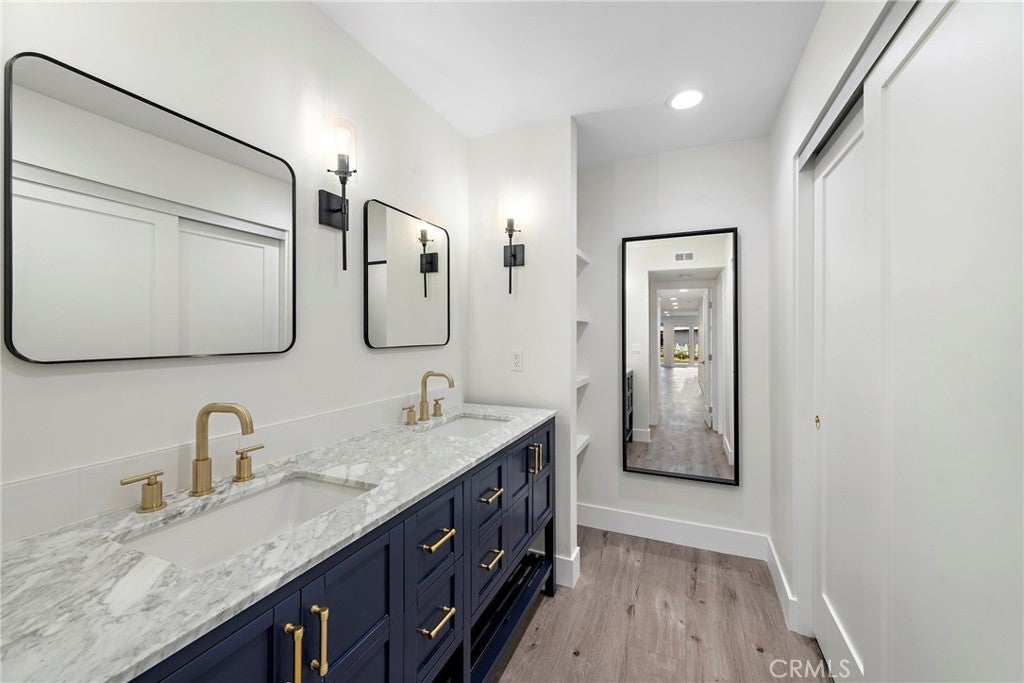 Nestled in the heart of Corona Del Mar, 411 Goldenrod unveils a stunning and fully remodeled residence, ideally positioned next to the iconic Goldenrod Avenue Bridge leading to a secluded beach. This lower unit, boasting 3 bedrooms, 2 baths, and 1450 sqft of luxurious living space, showcases meticulous craftsmanship. The interior has been transformed with a contemporary touch, featuring brand new quartz countertops, a Viking range, Kitchen Aid refrigerator, and new flooring. The bathrooms exude sophistication with fresh tiles, while high-end faucets and lighting fixtures add a touch of elegance throughout. Convenience meets style with the addition of a dedicated laundry room equipped with a new washer and dryer. Step outside to a tranquil brick patio complemented by a generous grass area—a perfect backdrop for outdoor gatherings. Whether relaxing by the designer fireplace in winter or staying cool with the much-desired central air conditioning in summer, this home caters to comfort and entertainment. Nestled in a quiet cul-de-sac, the property offers unbeatable walkability, placing you within a 2-minute stroll of one of Southern California's finest beaches and the vibrant Downtown Corona Del Mar. The traffic-free advantage of the cul-de-sac ensures a peaceful, never-ending beach getaway. Immerse yourself in the allure of 411 Goldenrod - a must-see in person for those seeking the epitome of coastal living.