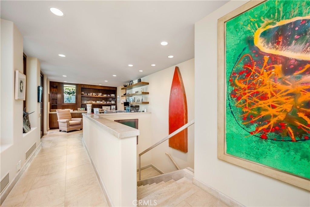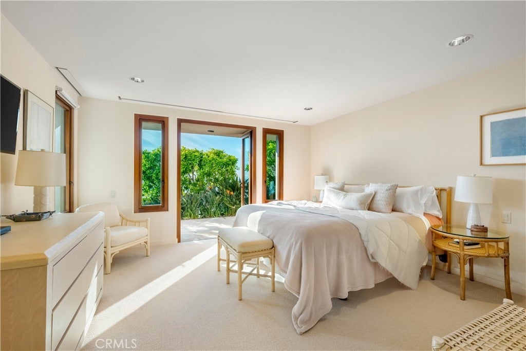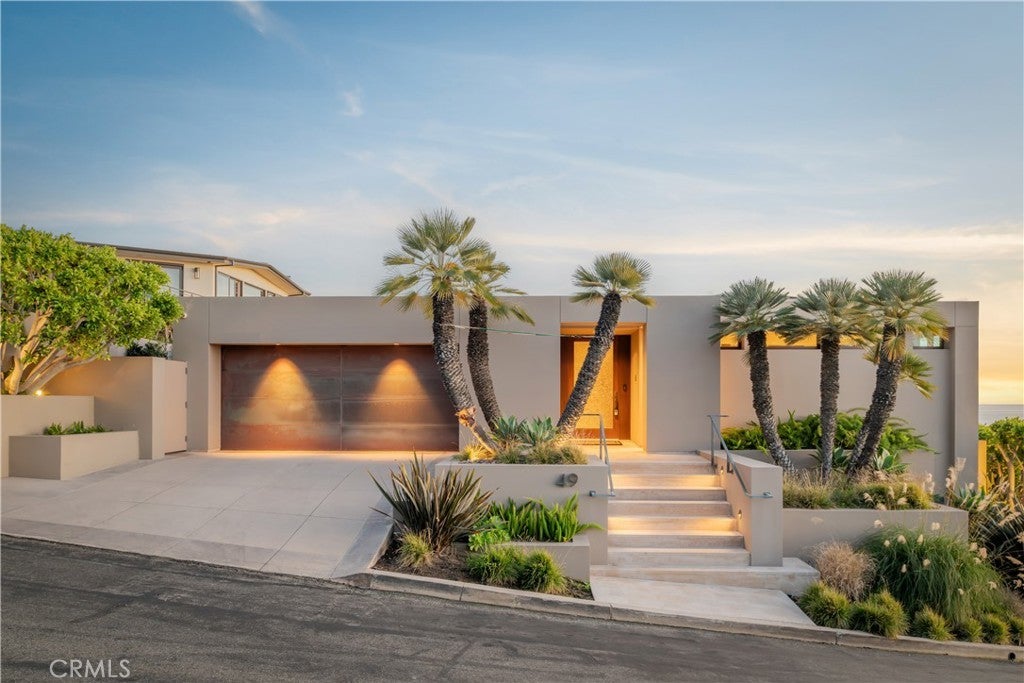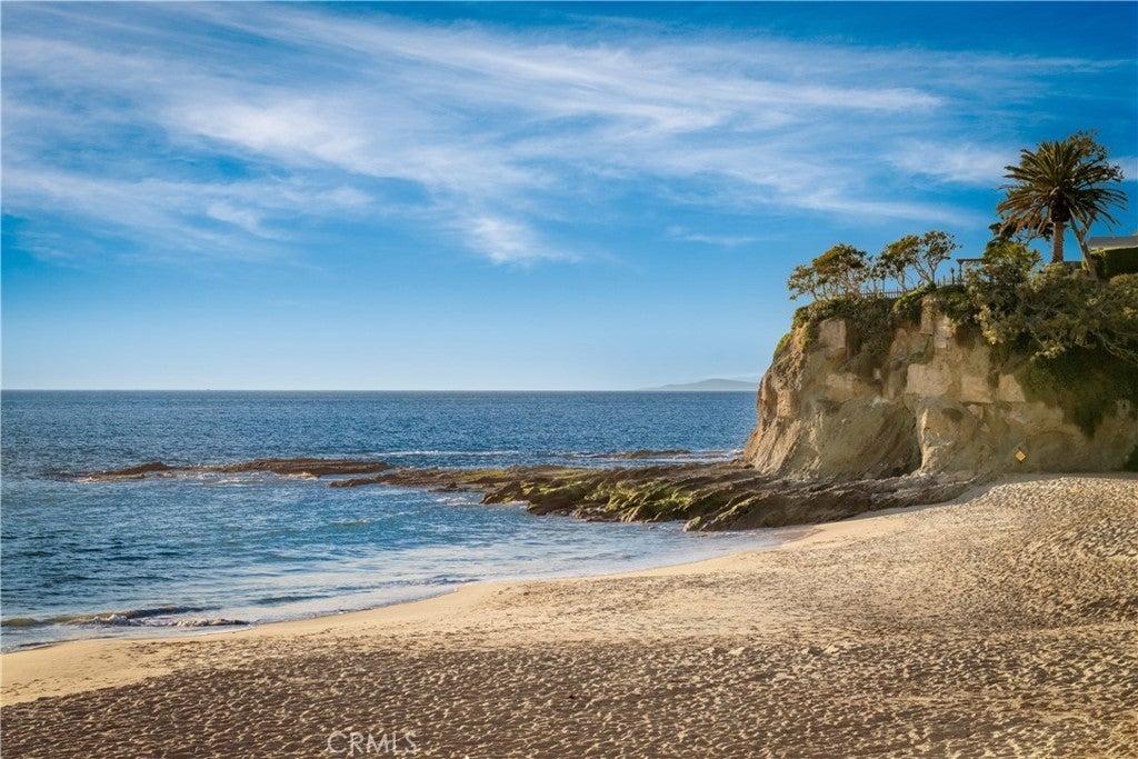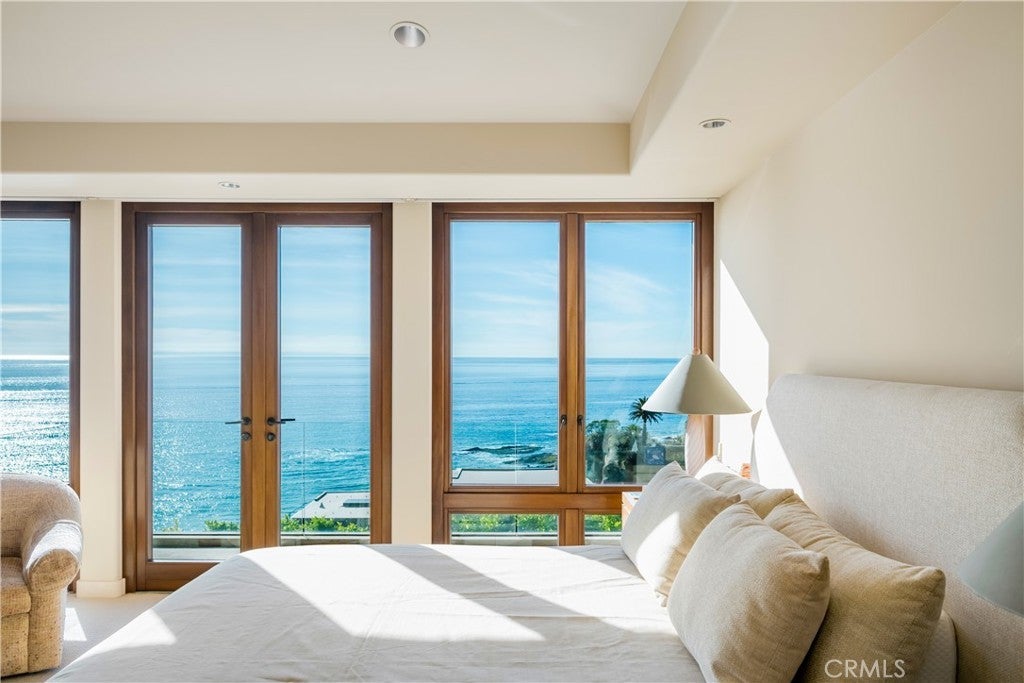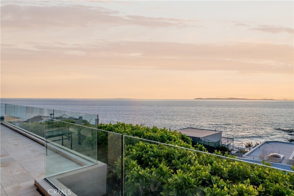 Located in the exclusive gated enclave of Lagunita, this striking soft-modern estate offers a blend of coastal sophistication and serene privacy. Positioned on a commanding ~10,500 square foot corner lot just one row back from the sand, the residence spans approximately 3,726 square feet of light-filled space designed to frame panoramic views of the Pacific Ocean, whitewater, and Catalina Island. The heart of the home is a voluminous great room with high ceilings and clean architectural lines, seamlessly transitioning to the ocean-facing upper deck via Italian doors. The adjoining kitchen offers breathtaking vistas and premium appliances. The thoughtful floor plan prioritizes ease of living with the primary suite situated on the main level, featuring floor-to-ceiling glass and a balcony to capture the morning sea breeze. A versatile den with access to the outside serves as an ideal home office or offers an opportunity for a fifth bedroom conversion. French limestone transitions from the main section to a private rear patio, where a tranquil water feature creates a peaceful sanctuary for alfresco dining and relaxation. A dedicated lower guest level offers three additional well-appointed bedrooms. Residing in Lagunita provides the quintessential Southern California lifestyle, including beach access to one of South Laguna’s most pristine stretches of sand. With its significant 10,500-square-foot lot and proximity to world-class dining and galleries, this property represents a premier opportunity for the discerning buyer seeking the quintessential Laguna Beach experience.
