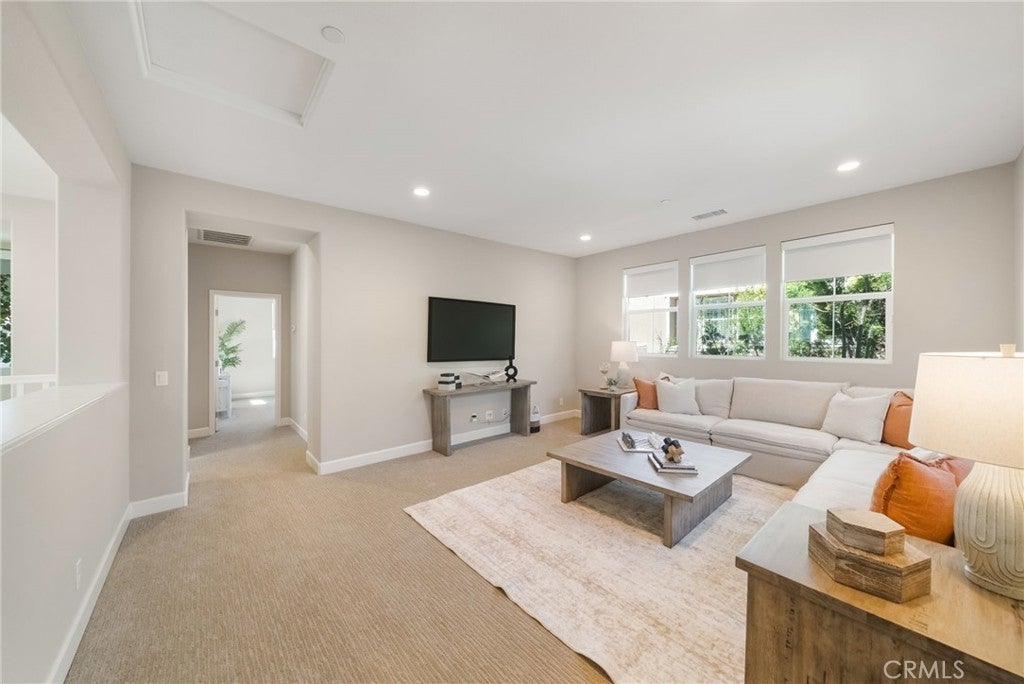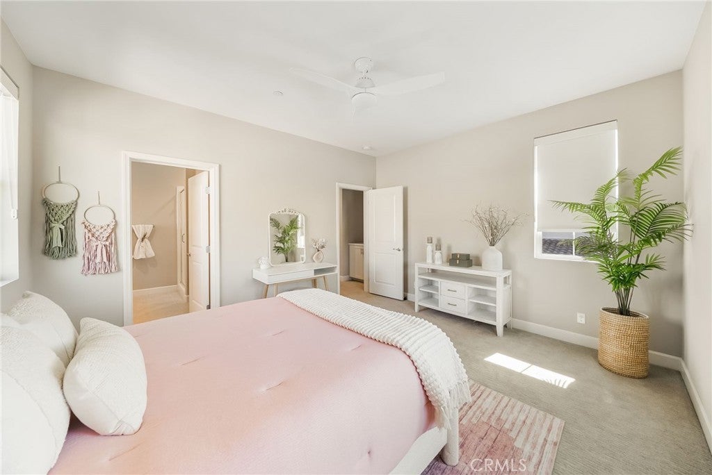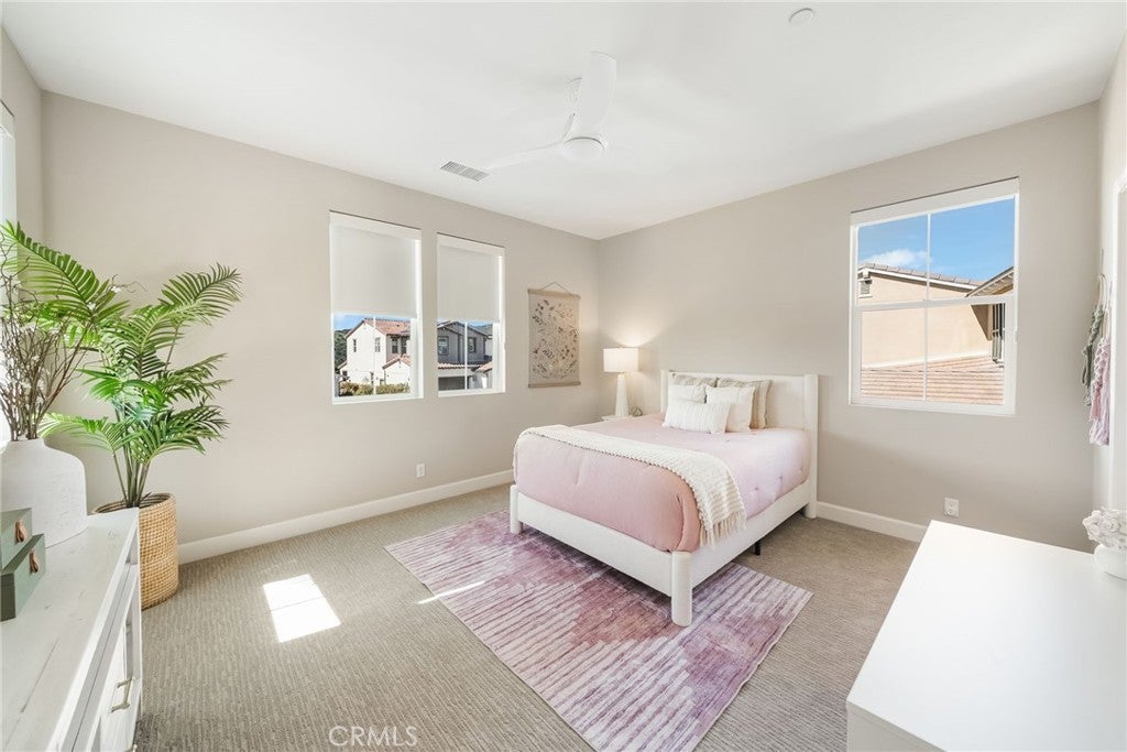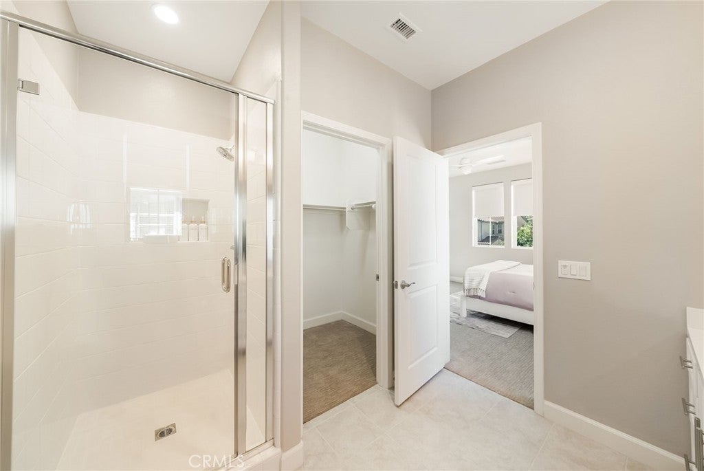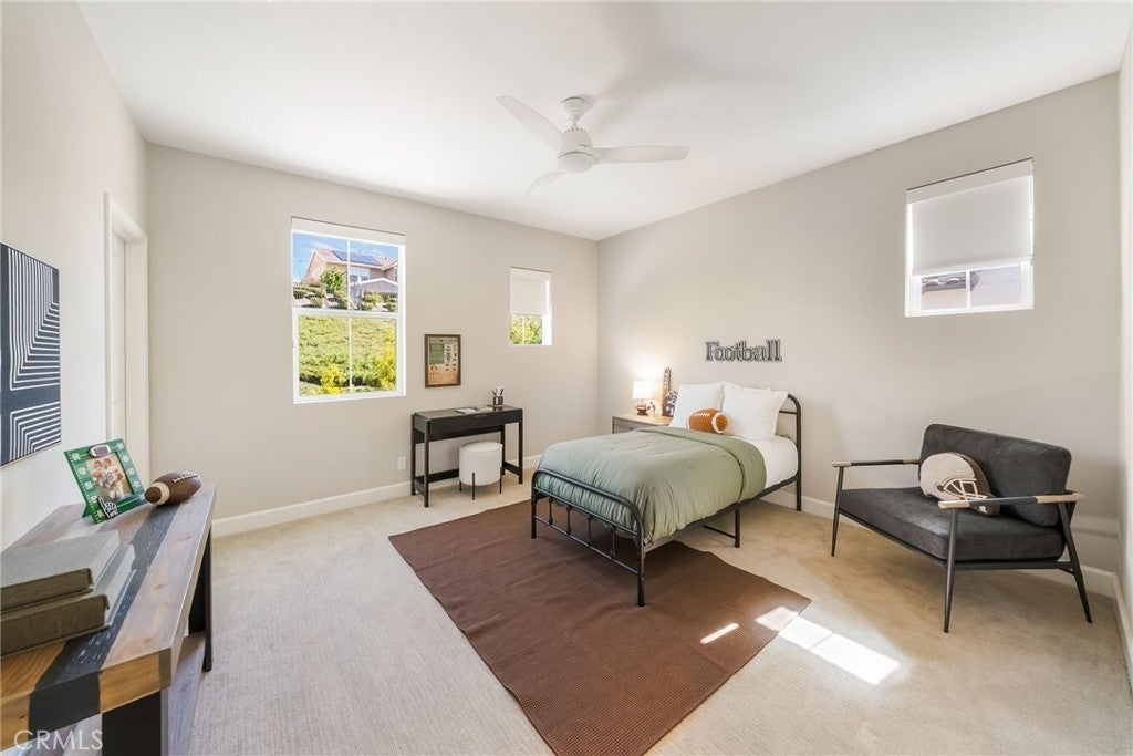 DOWNSTAIRS PRIMARY SUITE with an OPTIONAL FOURTH BEDROOM conversion available in the upstairs loft, offering flexibility for evolving needs. This thoughtfully designed Rancho Mission Viejo home features a functional layout where each bedroom includes its own walk-in closet and private ensuite full bathroom, providing comfort and privacy for both residents and guests.The open-concept living space is designed for seamless indoor-outdoor living, featuring accordion doors that open to the covered loggia, creating an inviting extension of the living area ideal for entertaining or relaxing. The primary suite includes its own sliding glass doors with direct access to the outdoor space, adding to the home's thoughtful design and connection to the outdoors.The downstairs living areas are enhanced with Hunter Douglas electric blinds, offering both convenience and a refined finish throughout the main level. The home also features owned solar, providing energy efficiency and long-term cost savings.Located in the highly desirable community of Rancho Mission Viejo, residents enjoy access to exceptional resort-style amenities including pools, fitness centers, parks, hiking and biking trails, and vibrant community gathering spaces.
