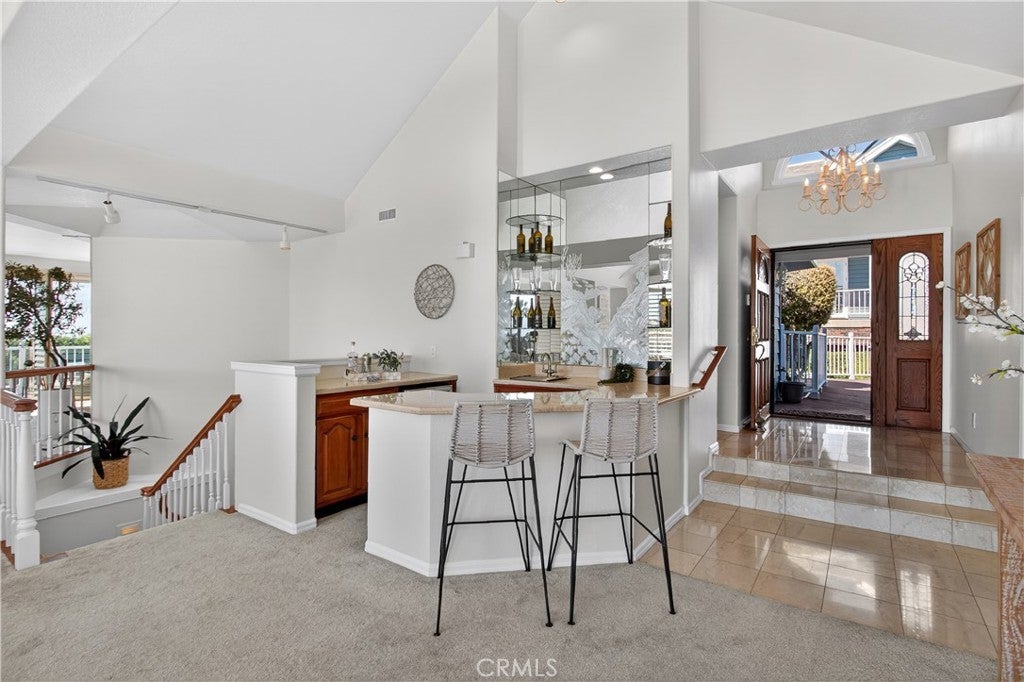 Breakfast Bar, Balcony, Cathedral Ceiling(s), Separate/Formal Dining Room, Granite Counters, Open Floorplan, Recessed Lighting, Bar, All Bedrooms Down, Bedroom on Main Level, Entrance Foyer, Main Level Primary, Primary Suite, Walk-In Closet(s), Coffered Ceiling(s), Dressing Area, Living Room Deck Attached, Utility Room, Wet Bar