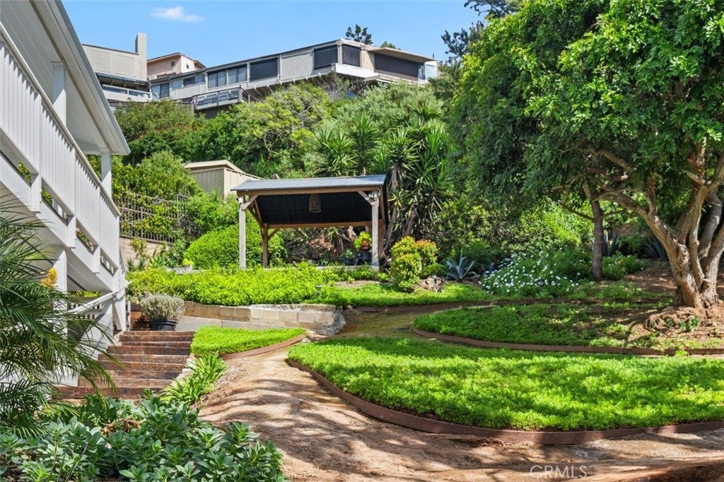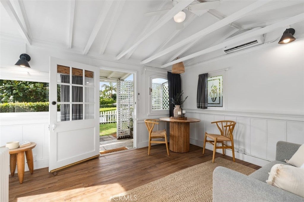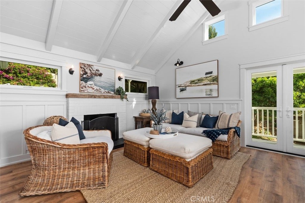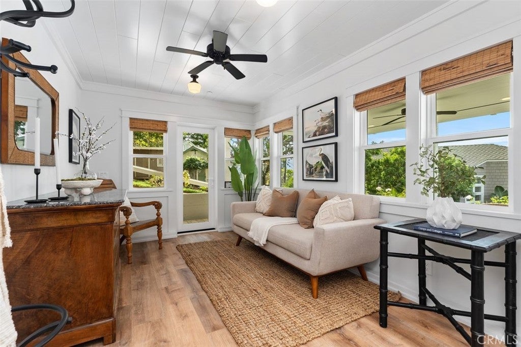 Originally built in 1939 as a classic coastal cottage, this beautifully restored home in the coveted Woods Cove neighborhood of Laguna Beach blends timeless character with thoughtful modern upgrades. Meticulously renovated while honoring its vintage roots, the residence captures the charm of Laguna’s early seaside homes while offering the comfort and functionality of contemporary living.Inside, the home showcases distinctive architectural details, including a custom tongue-and-groove ceiling in the living room that highlights the cottage’s historic character. Natural light fills the inviting living spaces, creating a warm and relaxed atmosphere that reflects the easygoing coastal lifestyle just blocks from the shoreline at Woods Cove Beach.The flexible floor plan offers four bedrooms or three bedrooms plus a dedicated office, along with three well-appointed bathrooms. Each space has been thoughtfully updated while maintaining the home’s original charm, creating an ideal balance of style, comfort, and practicality. Outdoor living is a defining feature of the property. A wraparound ocean-view deck provides the perfect setting for morning coffee, sunset gatherings, and year-round entertaining while taking in sweeping views of the Pacific Ocean, Catalina Island, and the sparkling city lights of Laguna Beach after dusk. Enchanting verandas line the pathways throughout the property, enhancing the home’s storybook feel and creating inviting spaces to relax and unwind.The backyard features a spacious veranda topped with a pergola—an idyllic retreat for afternoon lounging, outdoor dining, or enjoying the coastal breeze. Lush landscaping and charming pathways add to the peaceful garden atmosphere.A separate studio ADU offers exceptional versatility, complete with its own kitchen and bathroom—ideal for guests, extended family, a private workspace, or potential rental income.Additional conveniences include a large gravel driveway that provides ample parking and an EV charging port for electric vehicles. Located within the highly regarded Laguna Beach Unified School District, the home offers an added advantage for families seeking top-tier local schools.Just a few blocks from the sand and moments from the vibrant galleries, restaurants, and boutiques of downtown Laguna Beach, this enchanting Woods Cove property offers a rare opportunity to own a piece of Laguna’s history while enjoying the best of coastal California living.