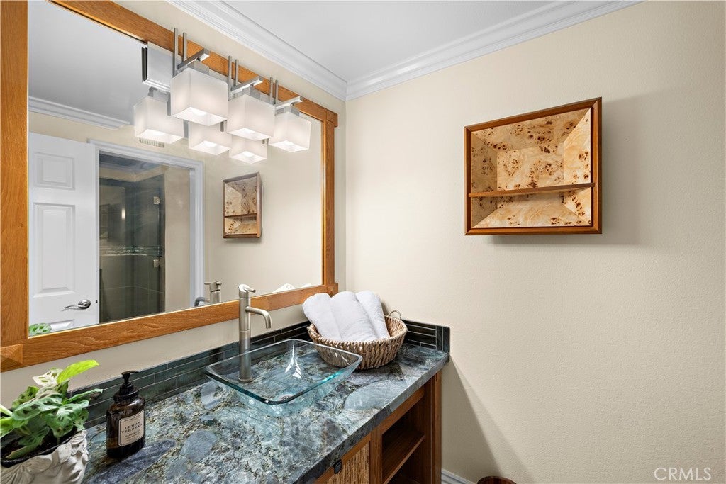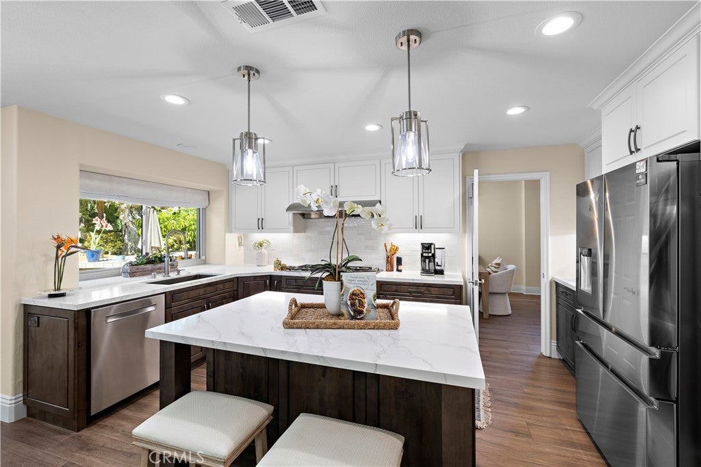 Step into a whole new vision of elegance at 1 Belaire, now brilliantly transformed with fresh, professional staging that truly brings this remarkable home to life. Nestled in the prestigious gated community of Crest de Ville in Laguna Niguel, this 3,715-square-foot residence is a masterpiece of design and comfort. With four spacious bedrooms, three beautifully updated bathrooms, and an expansive bonus room perfect for a media retreat, home office, or game room, every detail of this home has been thoughtfully curated. The newly staged interiors highlight the seamless flow of the home, from the striking porcelain tile and plush carpet underfoot to the sophisticated formal living and dining spaces. The heart of the home—a fully renovated chef’s kitchen—is now showcased in all its glory, featuring stainless steel appliances, custom cabinetry, and ample counter space that’s as functional as it is stunning. Picture hosting gatherings here, with the adjacent spaces perfectly styled to inspire connection and conversation. Retreat to the luxurious primary suite, now styled to evoke a true haven of rest and relaxation. It boasts a generously sized walk-in closet and a spa-like ensuite with dual vanities, granite countertops, and a separate shower. The secondary bedrooms, staged to emphasize their versatility and warmth, are ideal for family, guests, or whatever your lifestyle demands. Outside, the private backyard has been designed for seamless indoor-outdoor living and entertaining. The inviting spa, built-in barbecue, and ambient lighting are all framed by lush landscaping that highlight the serene, coastal ambiance of this home. Located in one of Laguna Niguel’s most sought-after gated communities, 1 Belaire offers the perfect balance of modern updates and timeless elegance. Discover the lifestyle you’ve been dreaming of—schedule your private tour today!