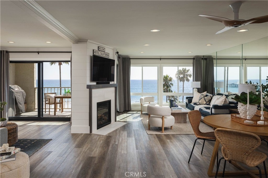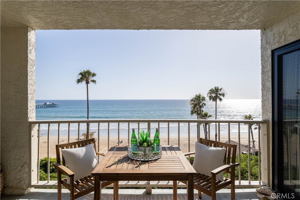 Welcome to your dream coastal retreat in beautiful San Clemente. This stunning beachfront condo offers the perfect blend of relaxed luxury and everyday comfort, with breathtaking sit-down ocean views, whitewater, and sweeping vistas of the sand—all from the comfort of your own home. Not to mention direct private access to the beach just steps away from your front door! Expertly constructed on dozens of deep caissons, the building offers an added level of structural integrity and peace of mind rarely found in oceanfront properties. Wake up to the sound of waves and enjoy your morning coffee on a private balcony overlooking the Pacific. Inside, the home features an open-concept layout filled with natural light, a spacious living area, and a modern kitchen complete with high-end finishes, sleek countertops, and ample storage—perfect for entertaining or unwinding after a day at the beach. Thoughtfully updated throughout to create a warm, inviting atmosphere that captures the essence of Southern California coastal living, this unit is sure to impress the most discerning clientele. Ideally located, you’re just a short walk to San Clemente’s vibrant downtown, where you’ll find boutique shopping, dining, and local charm. Set within the highly sought-after Reef Gate community, this 'building A, front row' unit is perhaps the best unit in the entire complex—offering a rare combination of privacy, views, and premium positioning, and quick and easy beach access. Additional highlights include private parking and abundant storage, along with resort-style amenities such as a pool and jacuzzi, sauna, workout room, and game room—everything you need to enjoy the ultimate beachside lifestyle. Whether you’re looking for a full-time residence, a vacation getaway, or a prime investment opportunity, this is your chance to own a true slice of paradise on the sand. Embrace a beach life, where sun, sounds of the surf, sunsets, and walks on the beach are closely interwoven.