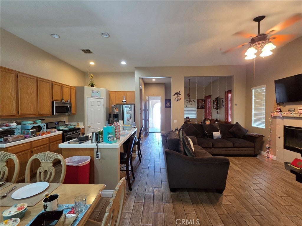 Spacious layout featuring 5 bedrooms and 3 baths, including a private casita with its own entrance and ensuite, ideal for guests or rental income. Open concept kitchen with large island and breakfast nook that flows into a cozy family room with fireplace. Formal dining room, indoor laundry, two car garage, energy-saving rock front yard that enhances curb appeal. Backyard includes cement patio, block-wall perimeter plus a storage shed. ideal for large Families or investors seeking space, versatility, and easy access to major highways. The separate casita makes it perfect for multi-generational living or rental opportunities. Situated on a quiet court, perfect for families and children. Quick access to Highway 395, connecting north to Victorville and south through Cajon Pass to San Bernardino/Los Angeles, minutes from I-15, serving as a direct route to Las Vegas or commuting south to Rancho Cucamonga and Fontana. Shopping & Grocery: Close to Victor Valley Outlets and a variety of big-box stores and grocery chains in adjacent Victorville. Food & Services: Convenient access to gas stations, fast-casual dining, and emerging EV charging infrastructure along nearby corridors. Parks & Entertainment: Richardson Park is a short drive away with playgrounds, skate areas, dog park, sports fields, and picnic spaces Schools: Zoned for local elementary/middle schools; within the Victor Valley USD boundary and near the newer Adelanto High School campus This house offers a thoughtfully laid-out, well-maintained home in a peaceful neighborhood, with a blend of indoor and outdoor flex space. The location provides effortless commuting options, shopping convenience, and local recreation all enhancing everyday living in the High desert.