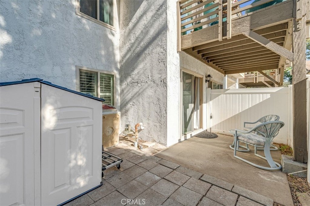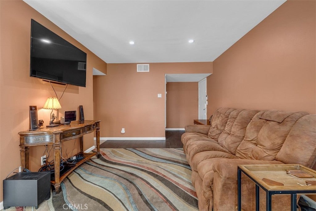 This charming, downstairs, 1 Bedroom, 1 bath condo, offers comfortable and efficient living in a well-designed space. The living room opens into the dining area with direct access to a private patio, perfect for relaxing and enjoying outdoor time. The kitchen includes quality wood cabinets in excellent condition with granite surfaces. The bedroom is generously sized with a large window that allows plenty of natural light. Large walk-in closet, situated just off the bedroom, offers ample storage. Additional highlights include laminate flooring throughout, central A/C and heat, and assigned carport space. The Woodlake Village complex is well maintained, offering pools, spas, outdoor barbeques, and low HOA fees that include water, trash, and gas utilities. Centrally located, walking distance from the new, Vin Scully Centennial Park, restaurants, shops and movie theatres. Don't miss your chance to call this place home! This complex is FHA and VA approved.