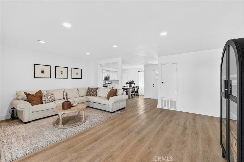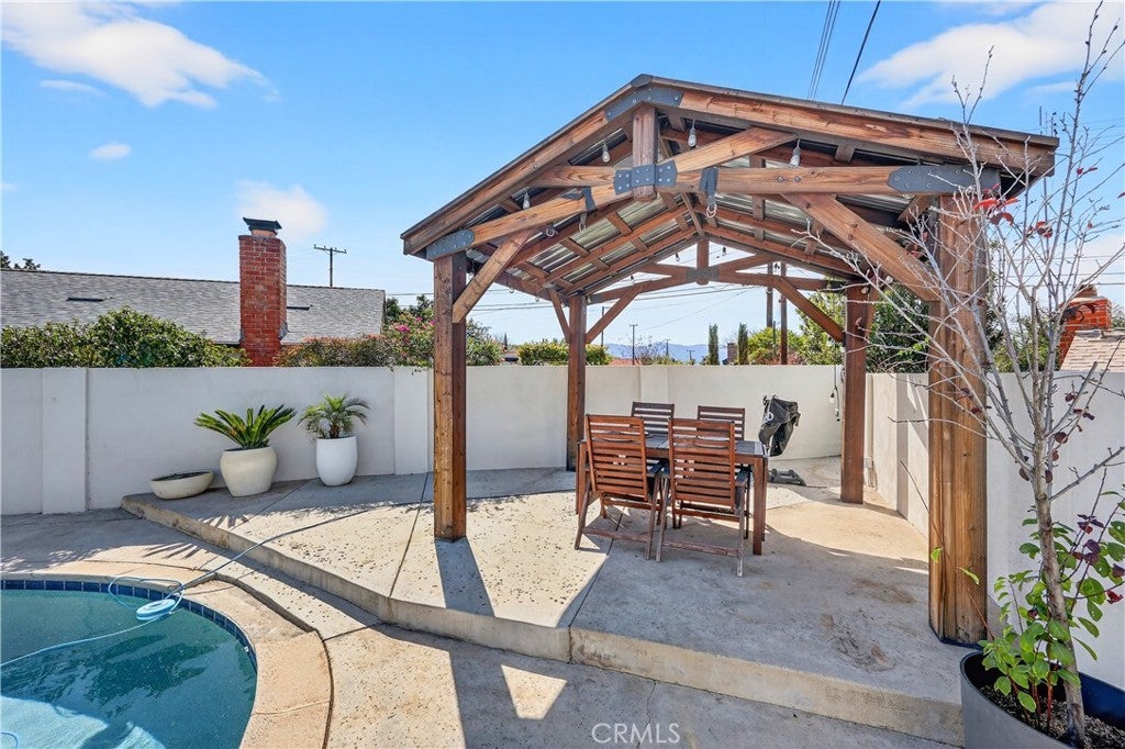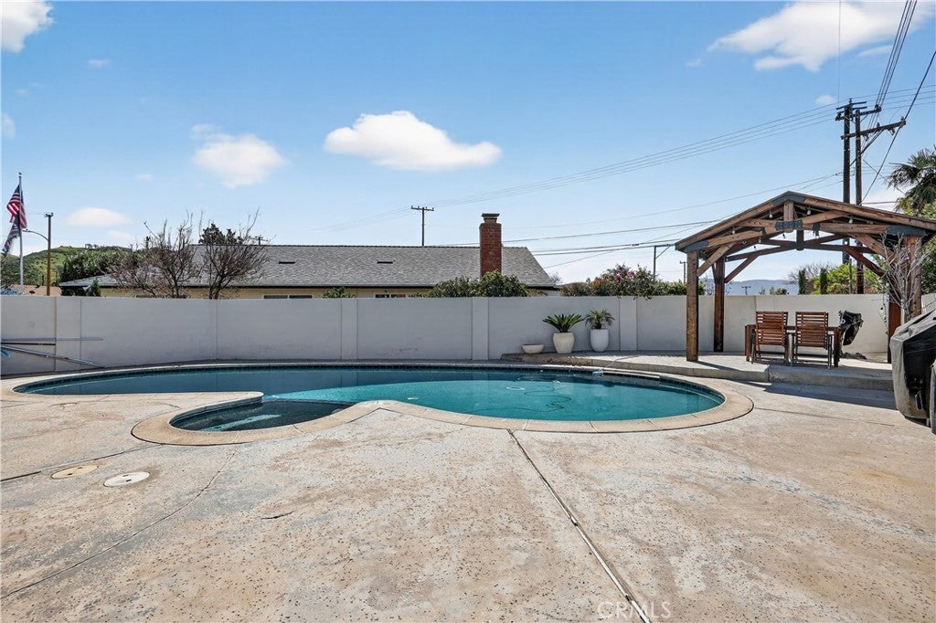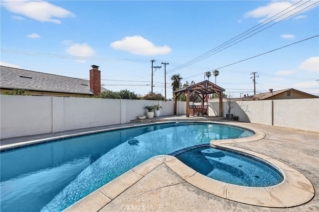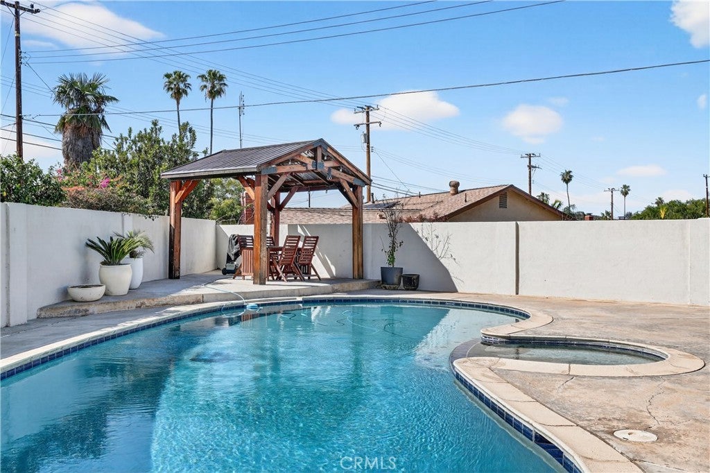 Stunning 4 bedroom, 2 bath pool home in Riverside offering the perfect blend of modern upgrades, smart home features, and a backyard built for entertaining. From the moment you enter, you’ll notice the stylish upgrades throughout including luxury vinyl flooring, upgraded baseboards, recessed lighting, and elegant French doors that fill the home with natural light and create a warm, inviting atmosphere. The beautifully updated kitchen features modern cabinetry, sleek quartz countertops, and a matching quartz backsplash, making it the perfect space for cooking, entertaining, and gathering with family and friends. Both bathrooms have been tastefully updated, including improvements to the primary bathroom, while the hallway bathroom includes a reglazed tub and updated vanity for a fresh, modern look. Additional upgrades such as dual pane windows, smart thermostat, and upgraded AC system add comfort and energy efficiency. Step outside to your private resort-style backyard where you can relax or entertain year-round. Enjoy the sparkling pool with Pebble Tec finish and upgraded pool filter, surrounded by plenty of space to host gatherings. The backyard also features an aluminum patio cover, gazebo, and stucco privacy walls, creating the perfect outdoor retreat. A removable pool safety fence adds peace of mind for families. Additional improvements include a smart irrigation system and upgraded water heater, making this home both functional and move-in ready. This is a fantastic opportunity for buyers looking for a turn-key home with modern upgrades and a resort-style backyard.