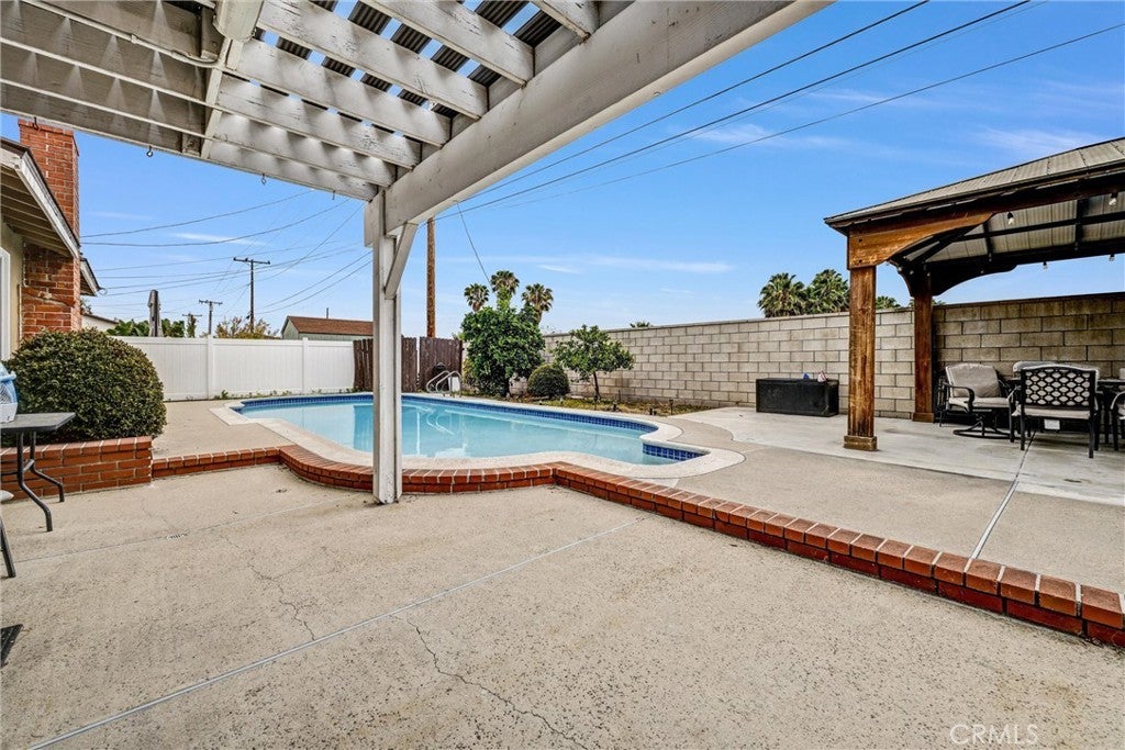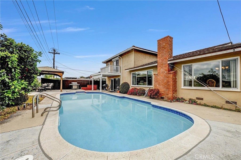 Beautifully upgraded 5-bedroom, 3-bath tri-level home designed for comfort and entertaining. The formal living room features a cozy fireplace and overlooks a private backyard with a sparkling pool. A spacious step-down den offers plenty of room for a pool table, game area, or additional living space. The lower level includes 2 bedrooms and a full bathroom—perfect for guests or multi-generational living. Upstairs, you’ll find 3 additional bedrooms and 2 bathrooms, including a spacious primary suite with a remodeled en-suite bathroom and private balcony. Every bathroom has been tastefully remodeled. The upgraded kitchen boasts granite countertops, brand-new appliances, instant hot water, a Stainless Steel dishwasher, and more—ideal for both everyday living and hosting Additional highlights include a newly installed paver driveway, dual-pane vinyl windows, copper plumbing, Outdoor Gazebo, solid hardwood flooring on the stairs and throughout the upstairs bedrooms. The pool has been completely refinished with PebbleTec in February 2024. Enjoy year-round comfort with a heated pool and a newer roof featuring lightweight concrete tile. This home is truly move-in ready and packed with value, including a 200-amp electrical panel and 240-volt power in the garage—perfect for an electric vehicle.