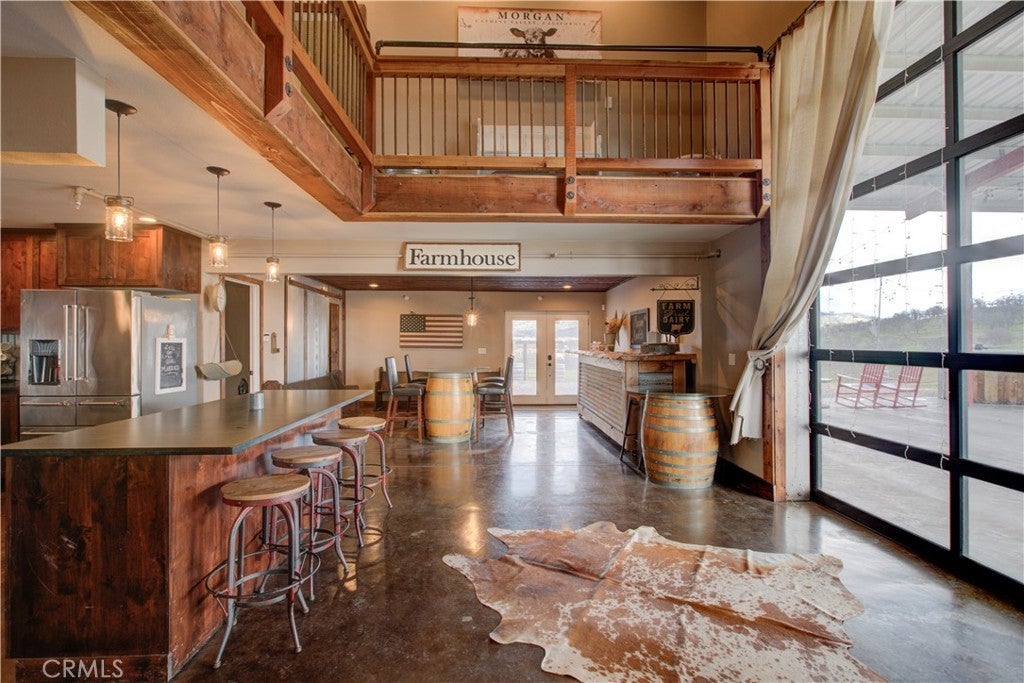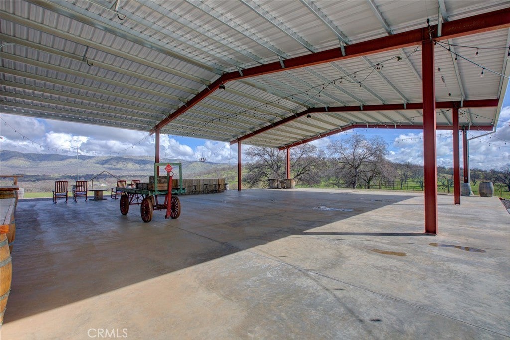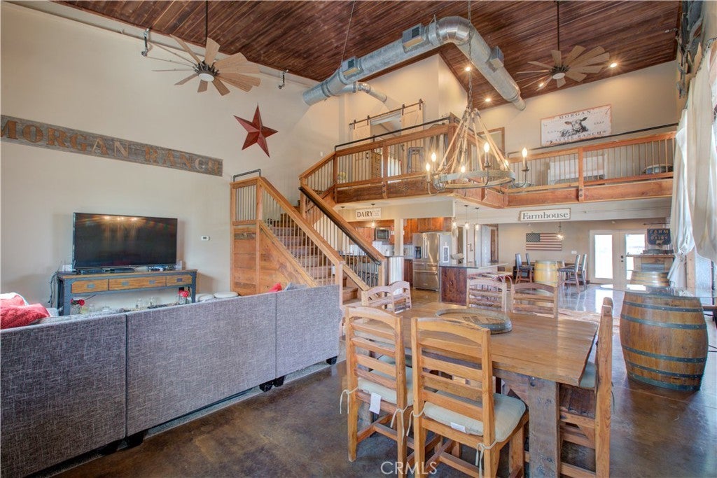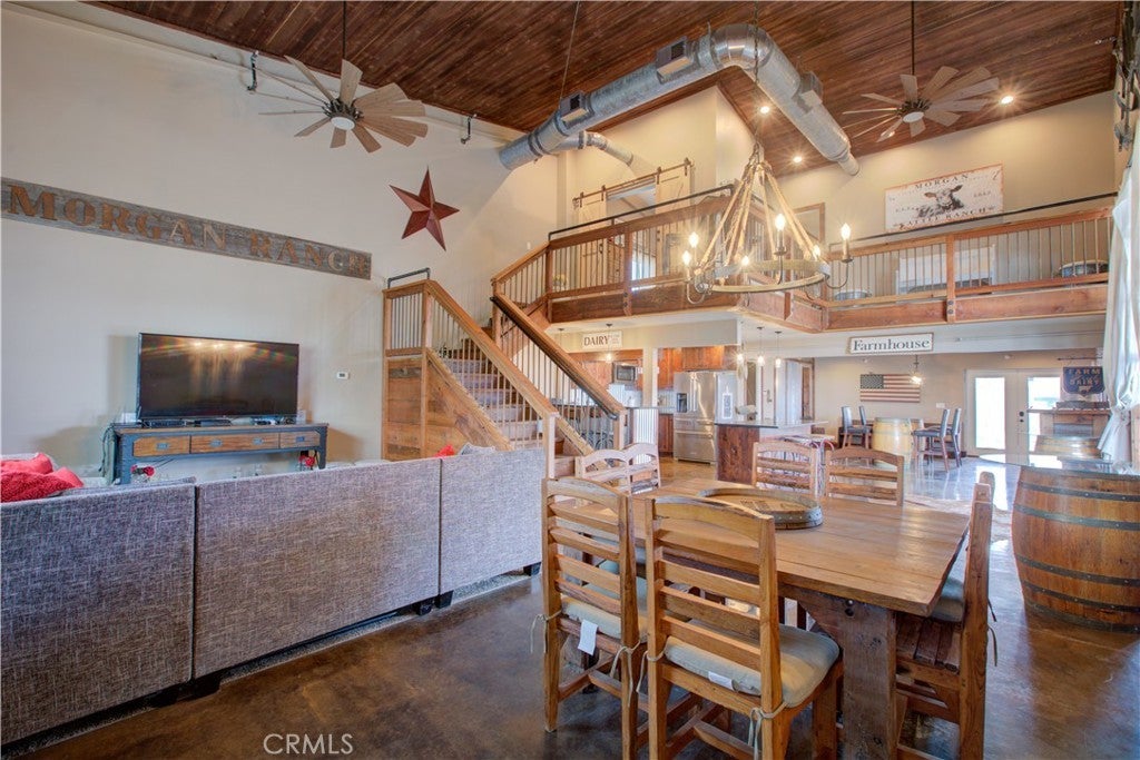 New Improved Price! Discover tranquility and wide-open spaces with this incredible mountain-view property nestled in the heart of Cathey's Valley. Situated on 103 acres of fully fenced agricultural land, this unique Barndominium-style two-story home blends rustic charm with modern comfort. The home features 2 bedrooms, 1.5 bathrooms, and offers 1,932 square feet of interior living space. An additional approx. 3,750 square feet of covered exterior barn-style area provides endless possibilities for entertaining, hobbies, or livestock. Step into a beautifully designed farmhouse-style interior. The main level boasts an open floor plan with a cozy family room, spacious dining area, stylish kitchen, laundry room, and half bath. A large glass-panel roll-up door seamlessly connects the indoors with the outdoor entertaining space, offering breathtaking views and fresh country air. The chef's kitchen is equipped with KitchenAid appliances, including a propane stove, microwave, dishwasher, refrigerator, and trash compactor. A charming breakfast bar and large center island with pendant lighting add both function and flair. Upstairs, a runway-style hallway leads to the primary bedroom suite, complete with a luxurious slate-tiled shower, soapstone vanity, and farmhouse touches throughout. The second bedroom includes built-in bunk beds, barn doors, and a ceiling fan perfect for family or guests. This steel-framed home is loaded with upgrades: ceiling fans, upgraded cabinetry, modern flooring and lighting, central heating and air, and a fire sprinkler system for added peace of mind. Outside, the rolling hills are ideal for both relaxation and agriculture, featuring a seasonal pond, underground electricity, well and septic system, water tanks, storage container, and a gated entry. Whether you're looking for a peaceful retreat, a place to entertain, or a property ready for livestock, this Catheys Valley gem offers it all.
