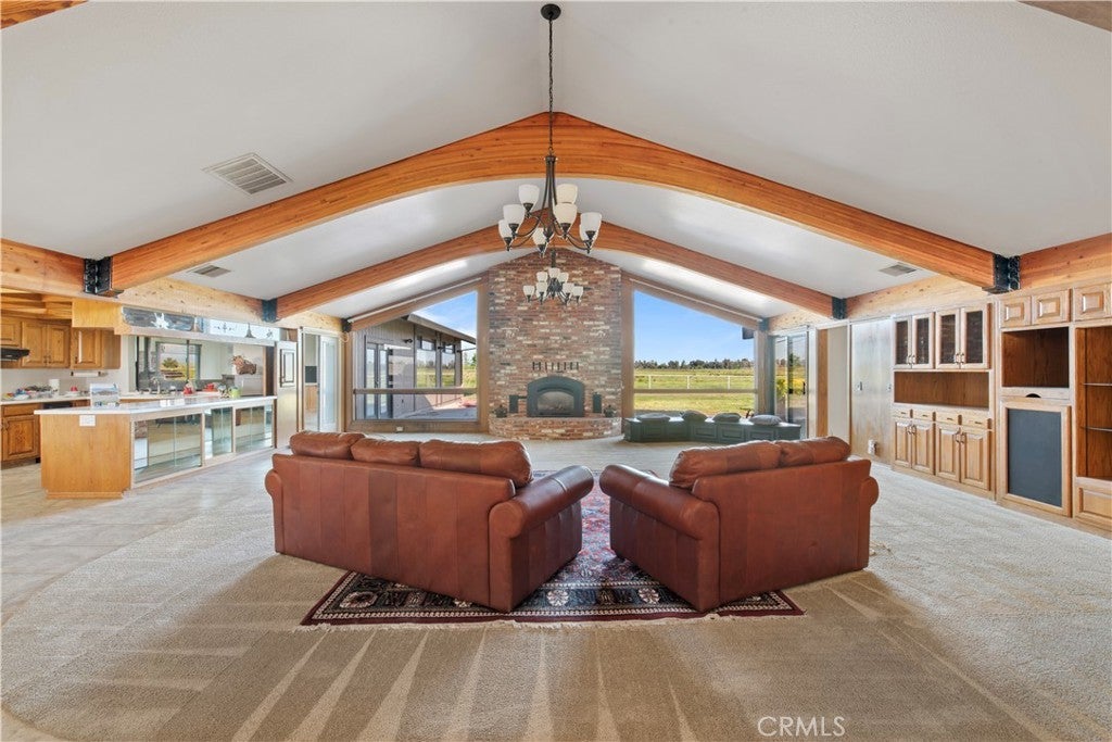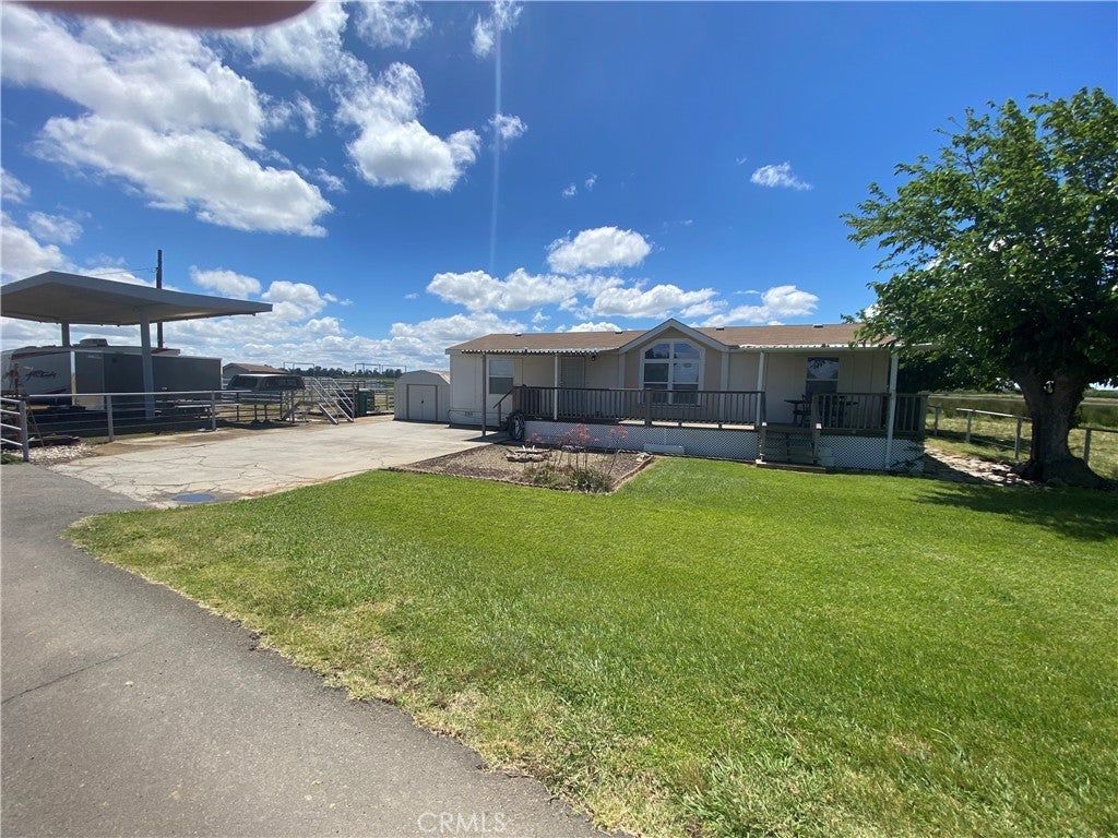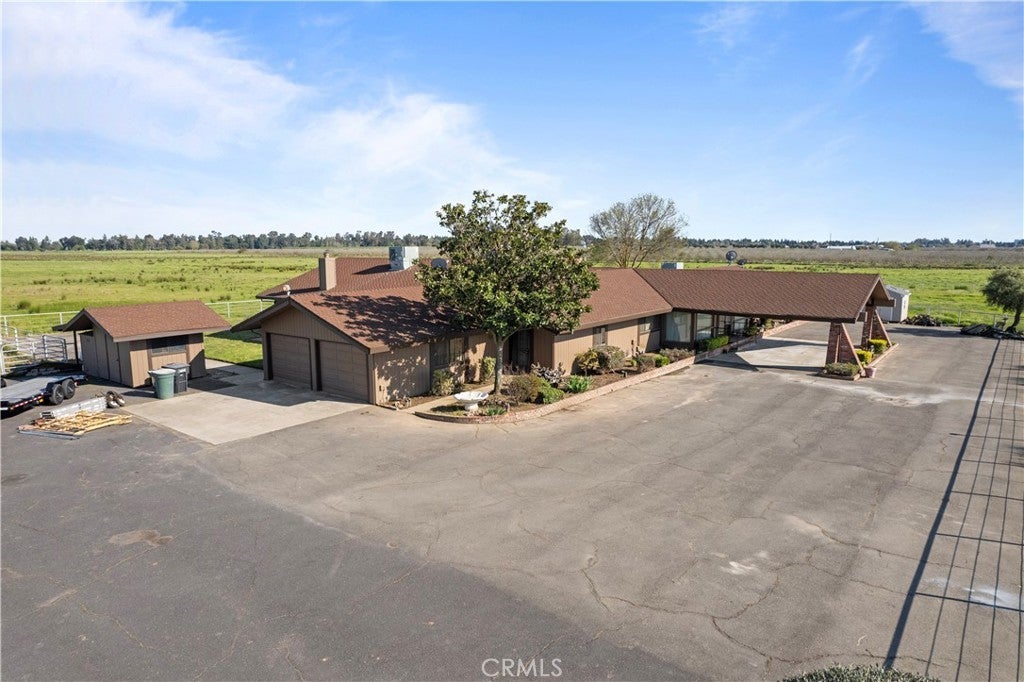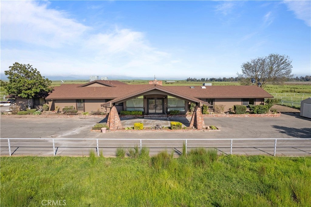 Price reduction! Are you looking for your own personal compound? Look no further, here it is. Over 68 multi-use acres suitable for farming, cattle, horses, recreation- you name it. Added bonus: Dual water source of MID irrigation water for the land/acreage in addition to well water for the two residences. It only gets better, with working corrals, a pole barn for hay storage, pipe and cable fencing and an electric entry front gate. The main house sprawls over 6300 sf in a Ranch Style design with an impressive porte cochere at the front that leads to the massive, solid copper double door entrance. Once inside the inviting space, you will be awed by the massive floor to ceiling fireplace in the grand living room. So much light fills the house make sure not to miss the huge solid wood beams that run the entire length of the living room ceiling. Did we mention it is a much-coveted single-story layout? Since you might not be inclined to leave your own personal oasis, we've got you covered. There is a permitted addition that can accommodate all the gatherings you can dream up. Parties, dancing, meetings, family get-togethers, this house can host it all with the oversized addition you have to see to believe. If the main house isn't enough square footage for you, there is the addl manufactured home