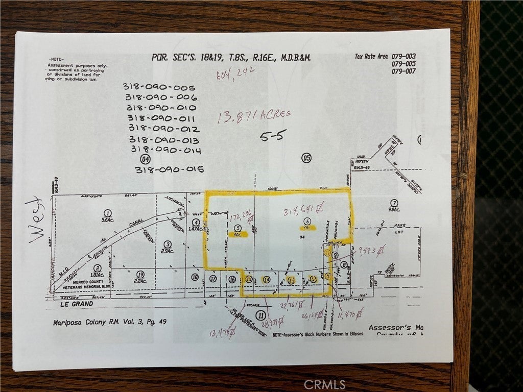 Iconic Historic Le Grand Treasure recently installed new Roof. 13.8 acres in producing Almonds with 8 separate APN's. Statuesque craftsman farm home with lots of charm. 2 Bedrooms, 1 Bath 1,240 sq ft. Home is on approximately 7 acres. Property includes: APN 318090005 4 acres, APN 318090010 11,470 sq ft, APN 31809011 9,593 sq ft, APN 318090012 26,124 sq ft, APN 318090013 27,761 sq ft, APN 318090014 28,939 sq ft, APN 318090015 13,478 sq ft. Almond varieties Monterey & Carmel