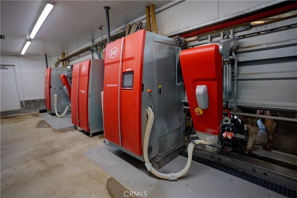 This facility, totaling approximately 820 acres, presents an unparalleled opportunity for those seeking a state-of-the-art dairy operation combined with highly productive agricultural land. This property seamlessly integrates modern dairy technology with productive farmland, catering to both immediate operational needs and long-term agricultural investment. Equipped with four expansive free stall barns, utilizing Thirty two Lely A5 robotic milking systems. In addition, there are two compost barns: one for dry cows and another for closeup and hospital use. A special needs free stall barn offering 60 stalls, three Albers manure separators, and a substantial commodity barn. There are two 7000 gallon BouMatic milk tanks with refrigeration and a 7000 gallon Westfalia milk holding tank. The hospital barn is equipped with a double 8 herringbone parlor, ensuring the highest standards of animal health management. Feed systems are supported by eight 20-ton grain tanks and eight Lely Juno feed pushers. There are three water tanks each holding 50,000 gallons for fire and class 2 water systems. Submersible pumps and irrigation wells provide consistent water powered by TID and PG&E. Residences: Custom built 4 bed/4.5 bath home (Life Estate), separate 3 bed/2.5 bath modular home and shop