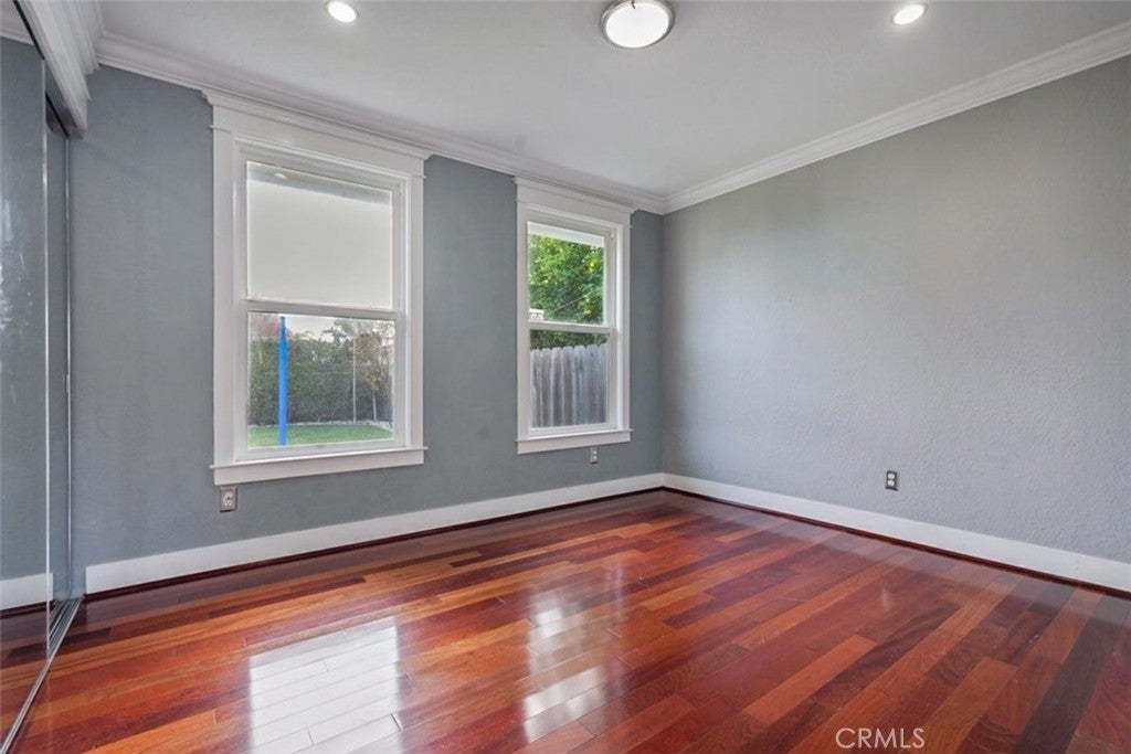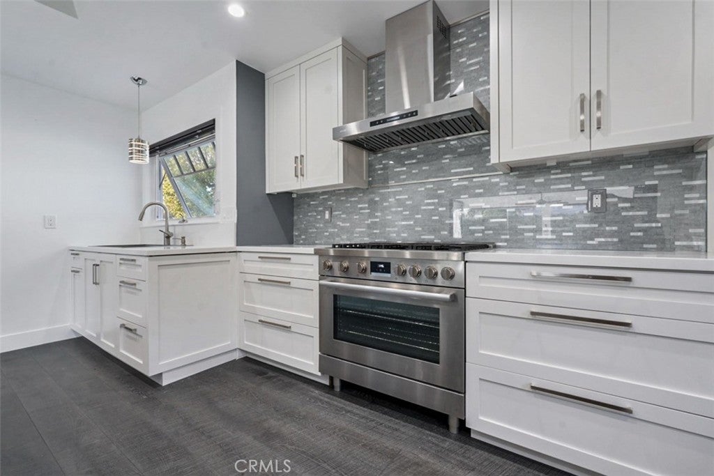 Unique Among Today's Homes. Custom Three Bedroom Two Bath. Fine Touches Distinguish this Wonderful Home. Solid front door with wood flooring throughout the house, custom cabinets, 11x4.5 island counter, industrial style gas range, recessed lights, in-ceiling bluetooth speakers, built-in entertainment, rain censored skylights, crown molding, wi-fi smart AC, custom windows, stamped driveway, frosted tempered glass garage door, security cameras, and a 16 foot Bi-Folding Glass Sliding Door that opens up to your backyard Patio! A Generous Dose of Elegance! Backyard Patio has partial glass sliding doors, stamped concrete, maple trees, and shrub on top of fence for extra privacy. Truly Different. A Must See!