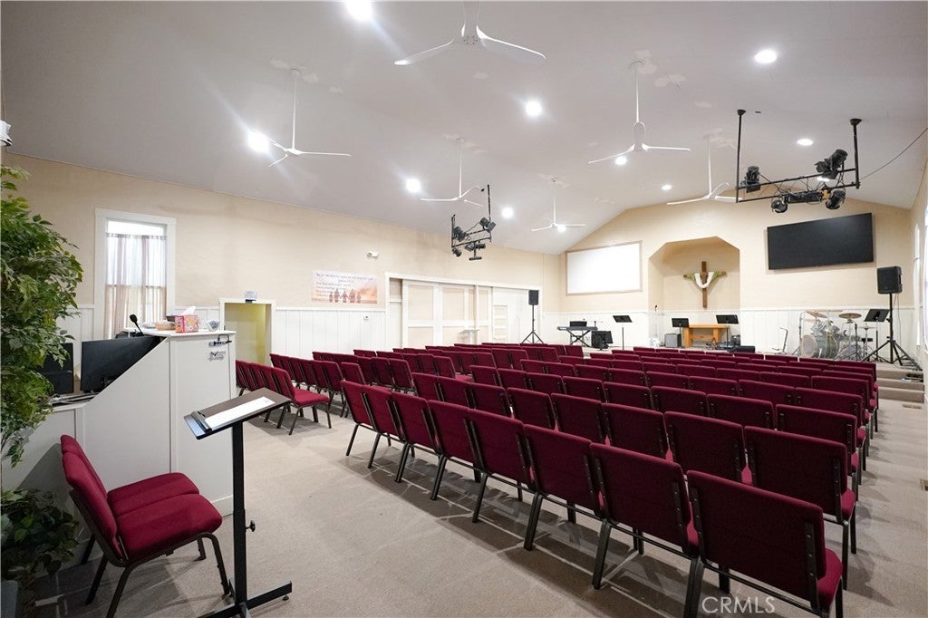 Beautiful church property 3848 sqft on .26ac offers a warm and inspiring setting designed for worship, fellowship, and community outreach. Step inside to a modern foyer that leads to a light-filled sanctuary w/ceiling fans featuring an elevated platform, creating a beautiful focal point for services, praying, conferences, weddings, Bible studies, and gatherings. The building is thoughtfully laid out with a modernized kitchen equipped for food service, food distribution and events, opening into a generous multipurpose hall ideal for banquets, meetings, and group activities. A private office provides a quiet workspace and privacy for counseling sessions. Dedicated spaces for children include a cozy nursery, an engaging playroom, and a large classroom-style area perfect for youth programs and children’s ministry. Outdoors, the property continues to impress with a securely enclosed backyard, enhanced by mature landscaping and a tranquil gazebo—ideal for gatherings or quiet reflection. Convenient restrooms, ramp and storage structure too. Handy youth center is also next door and also for sale separately. Could be more offices, Bible study rooms, more ministry areas, etc. This inviting property is move-in ready and perfectly suited for a congregation seeking a place to worship, connect, and make a meaningful impact within the Atwater community.