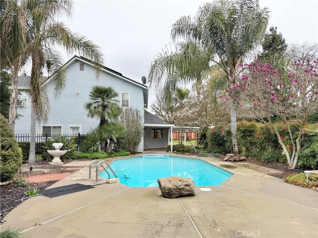 Step into your new home in the highly desired McSwain area! Sitting on a quiet cul-de-sac, this stunning two-story home offers 2,253 sq ft of thoughtfully designed living space on a beautifully landscaped 1.1-acre lot. This 3-bedroom, 3-bathroom residence features an impressive family room with soaring ceilings open to the second story, creating a bright and airy atmosphere filled with natural light. The spacious layout provides comfortable living and entertaining areas, with seamless flow throughout the main level. Upstairs and downstairs living spaces offer flexibility for family living, guests, or a home office. Step outside to your own private retreat. The expansive, park-like backyard is perfect for entertaining and relaxation, complete with a detached 3-car drive thru garage, walls of storage cabinets, and a full outdoor bathroom designed for poolside convenience. Enjoy summer gatherings in the backyard pool and under the cabana-style bar, plus an additional gazebo ideal for outdoor dining or lounging while poolside. Plus tons of storage to house all of your tools, toys & holiday decorations. With over an acre of usable space, resort-style amenities, and room to spread out, this property offers the perfect blend of comfort, functionality, and outdoor living. This spacious home also has an OWNED SOLAR SYSTEM! This McSwain beauty won't be on the market long so don't wait to schedule your own private showing today!