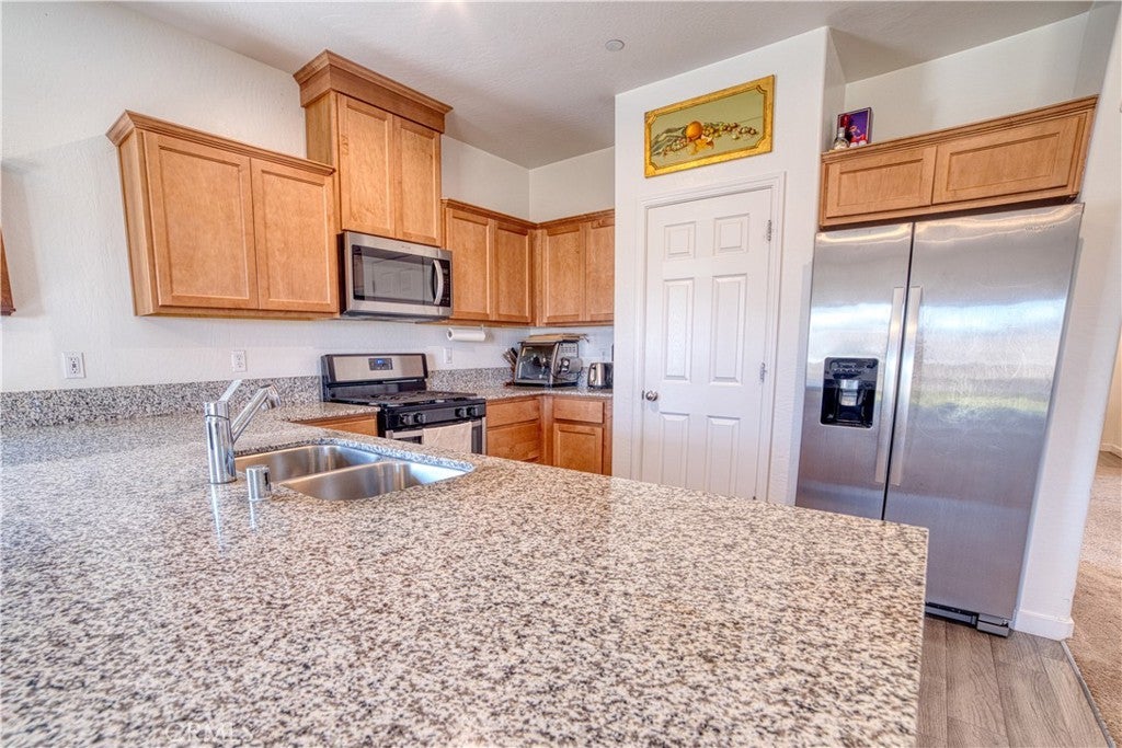 Welcome to this beautifully maintained single-story home featuring 3 spacious bedrooms, 2 full bathrooms, and an extra bonus room that can easily serve as a home office, guest bedroom, or hobby space perfect for flexible living. The semi-open concept kitchen and living area is ideal for gatherings, offering a warm and inviting layout with granite countertops, quality finishes, and a seamless flow for entertaining guests or enjoying family time. Energy efficiency is a highlight with owned solar panels, helping to keep utility costs low year-round. Step outside to a covered patio with concrete flooring, ideal for relaxing or hosting BBQs, and enjoy the added value of installed rain gutters for enhanced exterior care. Additional features include a two-car garage, modern fixtures throughout, and a great location with convenient access to schools, shopping, and parks. Built just three years ago, this home boasts numerous upgrades thoughtfully made by the current owners, who had originally planned to stay long-term but are now relocating out of state for work. This home combines comfort, practicality, and smart investments ready for its next owners to enjoy.