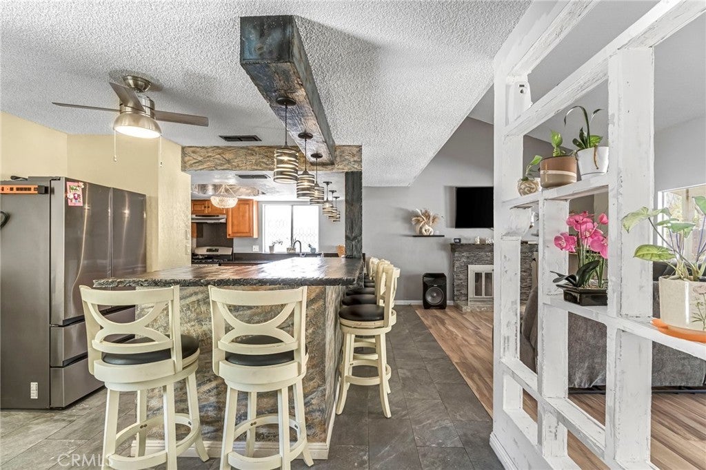 Step inside this beautiful 4-bedroom, 2-bath home in Fresno and be greeted by an airy, open layout filled with natural light. The spacious living room features tall ceilings, expansive windows, and a striking black fireplace that adds a modern touch of character. The heart of the home is the open-concept kitchen, fully upgraded with a huge center island, gas stove, updated cabinetry, and plenty of storageperfect for both everyday living and entertaining. The seamless flow from the kitchen to the living and dining areas makes this space as functional as it is inviting. Down the hall, you'll find cozy carpeted bedrooms, including a generously sized primary suite with not one, but two closets and direct access to the backyard through elegant double doors. Both bathrooms have been updated, and there's ample storage throughout the home to keep things organized and clutter-free. Step outside to enjoy the 6,000 sq ft lot featuring a covered patio and a nicely maintained yard. With 1,581 sq ft of smartly designed living space, this home combines modern updates, thoughtful layout, and a welcoming atmosphere ready for you to move in and make it yours.