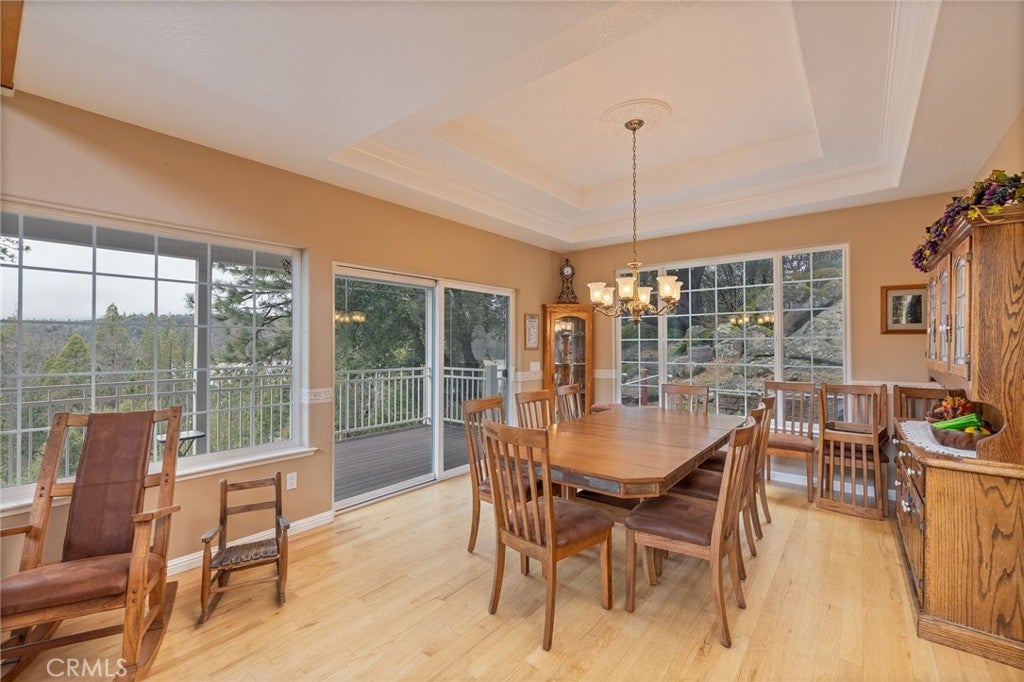 Custom Richwell Home with Lake Views, Privacy & Boat Slip on Oak Dock Perched above the surroundings for enhanced privacy, tree, and lake views, this stunning custom Richwell home offers exceptional craftsmanship and thoughtful design throughout. Vaulted and coffered ceilings, granite countertops, custom wood flooring, and an abundance of windows fill the home with natural light and showcase beautiful lake views. The main level features a spacious great room open to the kitchen and dining areas—ideal for both everyday living and entertaining. Off the dining area, a covered wraparound deck constructed with Trex-style materials, powder-coated railings, and wraps to the front of the home, creating seamless indoor-outdoor living. A large bedroom and full bath complete the main level. Upstairs, the elegant primary suite is accessed through French doors and offers a private retreat with a jetted tub, travertine tile floors, walk-in closet, and a private balcony. The open landing overlooks the living room below, adding to the home’s airy feel. Two additional upstairs bedrooms and a full bath are included, with one bedroom featuring its own private balcony. Additional highlights include abundant storage, dual A/C and heating systems installed in 2019, a 400-lb winch for conveniently bringing firewood up to the main level, and southern exposure that helps melt snow and ice more quickly in winter. The oversized two-car garage offers extra height and space—perfect for boat storage—with an extra-tall garage door. Enjoy excellent access with two entry points to the home, ample parking, and a boat slip on Oak Road Dock, making this property ideal for lake living.