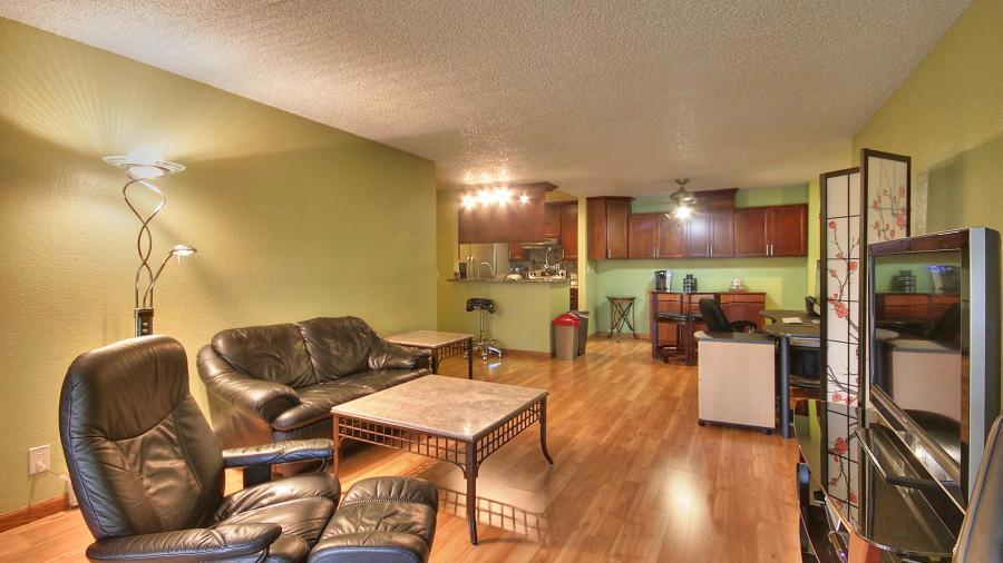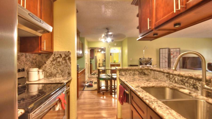 Bright Updated Super Clean End unit w/2 master suites split by large livingroom. Kitchen wi/ modern cabinets, granite counters& S/S appliances. Wood floors thruout. Double pane windows and sliding door. Bathrooms w/ designer's tiles, 2 bathtubs, newer vanities.Large walk in closets. Private balcony perfect for relaxation. 1 parking. Coin operated laundry & Elevator in building. Complex offers security guards, gym, club house, on-site management, tennis court, swimming pools and sauna, free shuttles, etc.