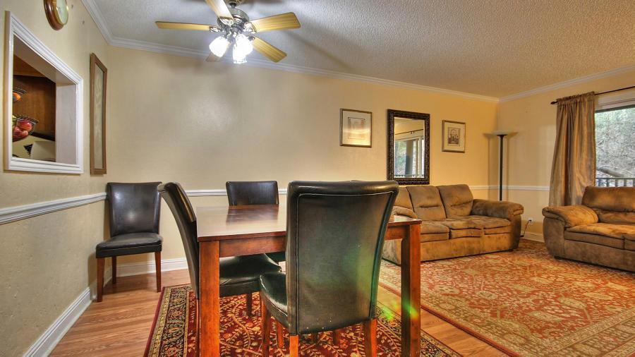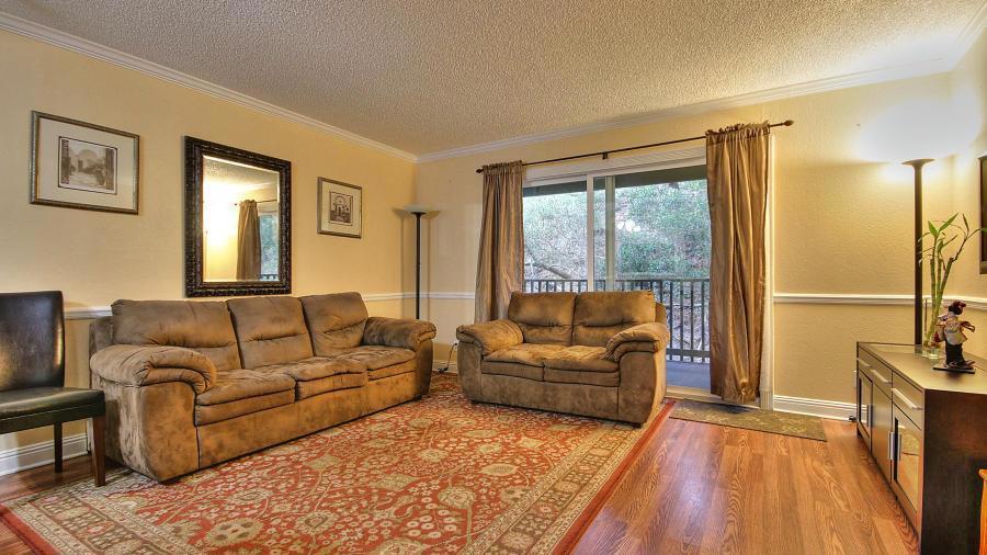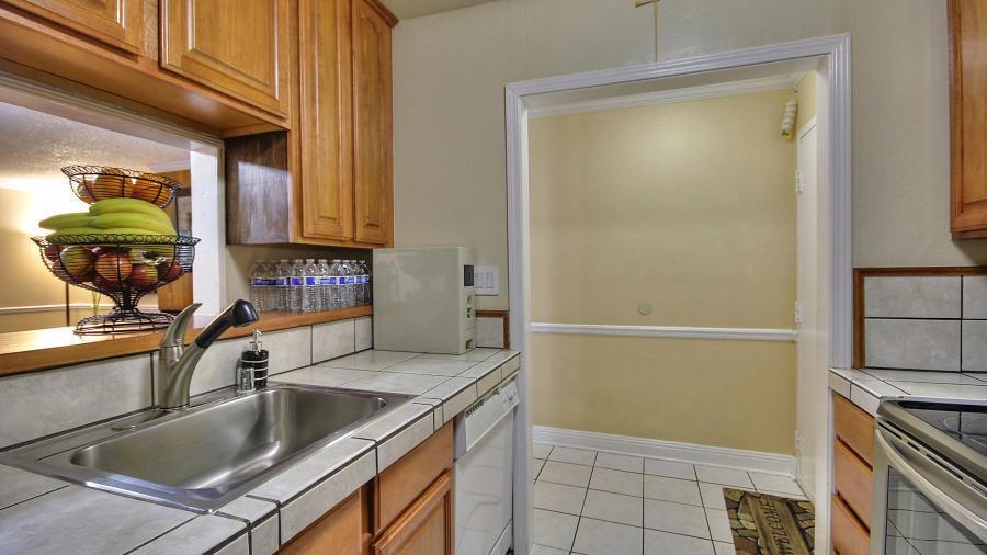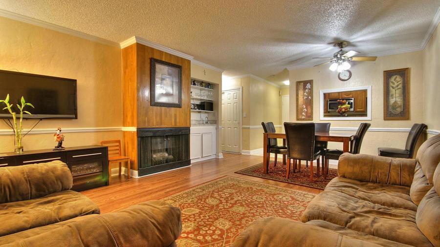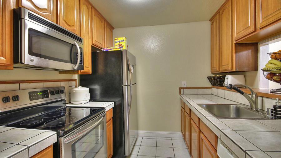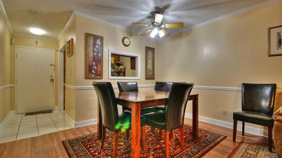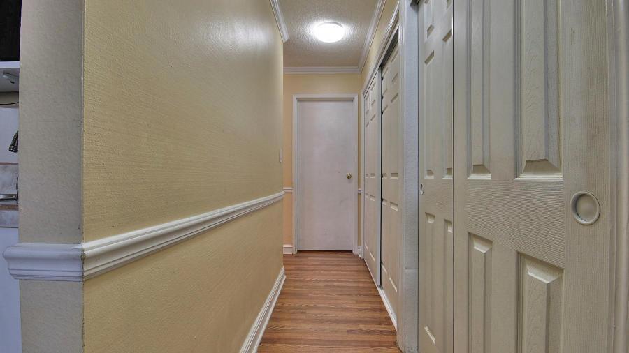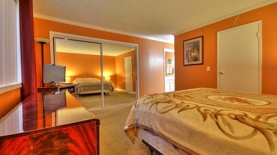 Well Kept 3bed/2ba condo all on 1 level. Clean Kitchen w/ tile counter tops & floors, functional appliances. Living room w/laminated floors, cute wet bar & sliding door to the balcony. 1 master suite& another 2bed/1ba. Double paned windows &sliding doors. Units comes w/1 carport parking and storage closets. Crown Colony offers security guards, swimming pools, gym, tennis court, club house, on site HOA office and shuttle buses. HOA includes water, hot water, garbage, building insurance, management & etc.