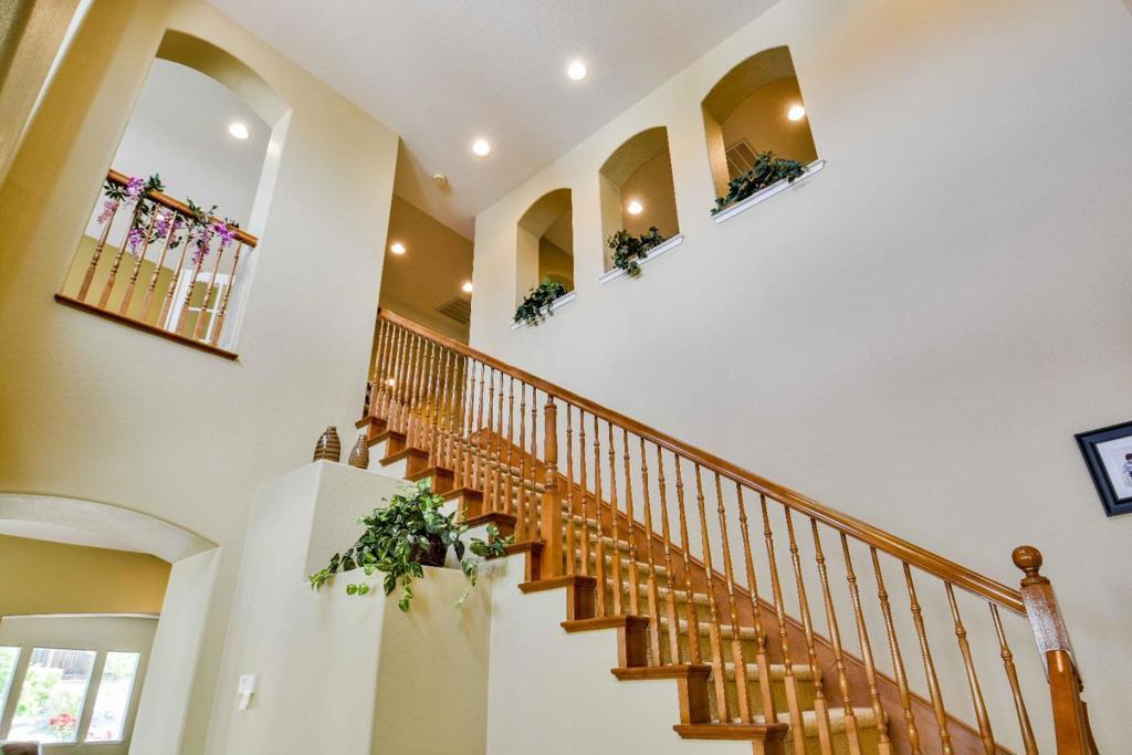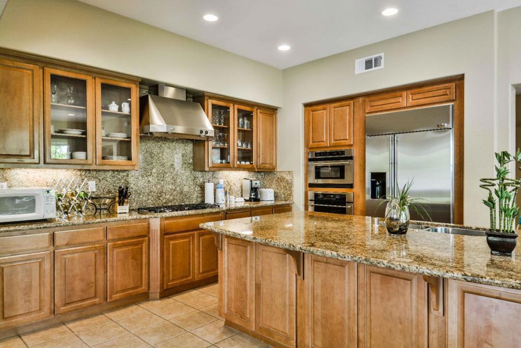 Highly upgraded gorgeous home featuring soaring volume ceilings,spacious family room,office, tech area,loggia,hardwood & stone floors,granite counters & SS appliances,built-in frige,security&surround sys.Desirable downstairs bed w/full bath. Spacious yard w/ fruit trees.