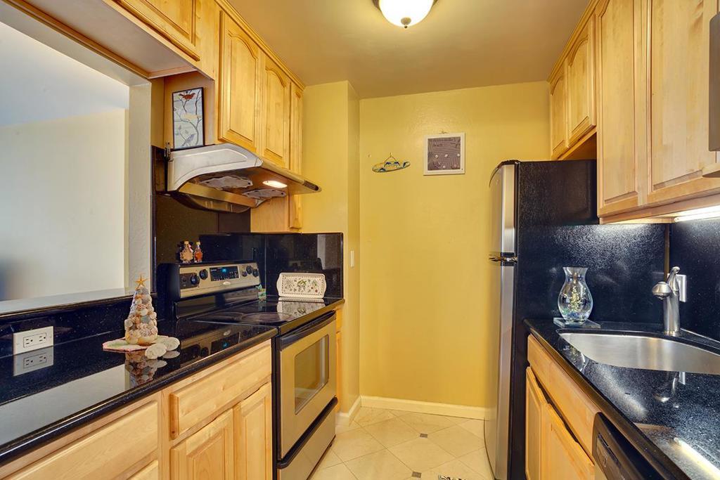 Remodeled kitchen and bathroom with granite counter tops. Beautiful sunset view from large balcony. Ample closet space. Monthly HOA $405 includes 1-car parking, storage locker, heating, water, garbage, 2 pools & spas, gym, coin-op laundry, clubhouse and billiard room. Great views from the clubhouse. Closed to shopping and Caltrain.
